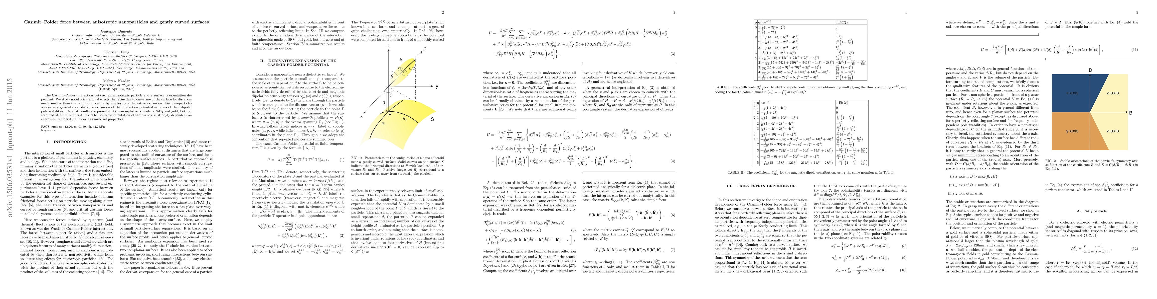 Research explores how Casimir-Polder force behaves between anisotropic nanoparticles and curved surfaces, finding that curvature affects orientation and depends on temperature and material properties.