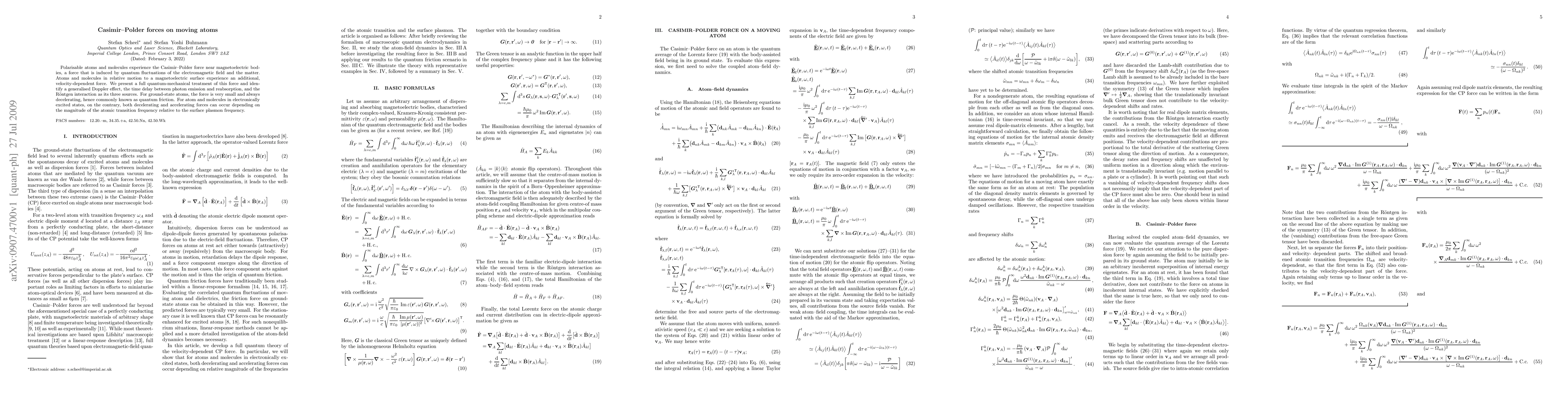 Polarisable atoms and molecules experience the Casimir-Polder force near magnetoelectric bodies, a force that is induced by quantum fluctuations of the electromagnetic field and the matter. Atoms and molecules in relative motion to a magnetoelectric surface experience an additional, velocity-dependent force. We present a full quantum-mechanical treatment of this force and identify a generalised Doppler effect, the time delay between photon emission and reabsorption, and the Roentgen interaction as its three sources. For ground-state atoms, the force is very small and always decelerating, hence commonly known as quantum friction. For atom and molecules in electronically excited states, on the contrary, both decelerating and accelerating forces can occur depending on the magnitude of the atomic transition frequency relative to the surface plasmon frequency.