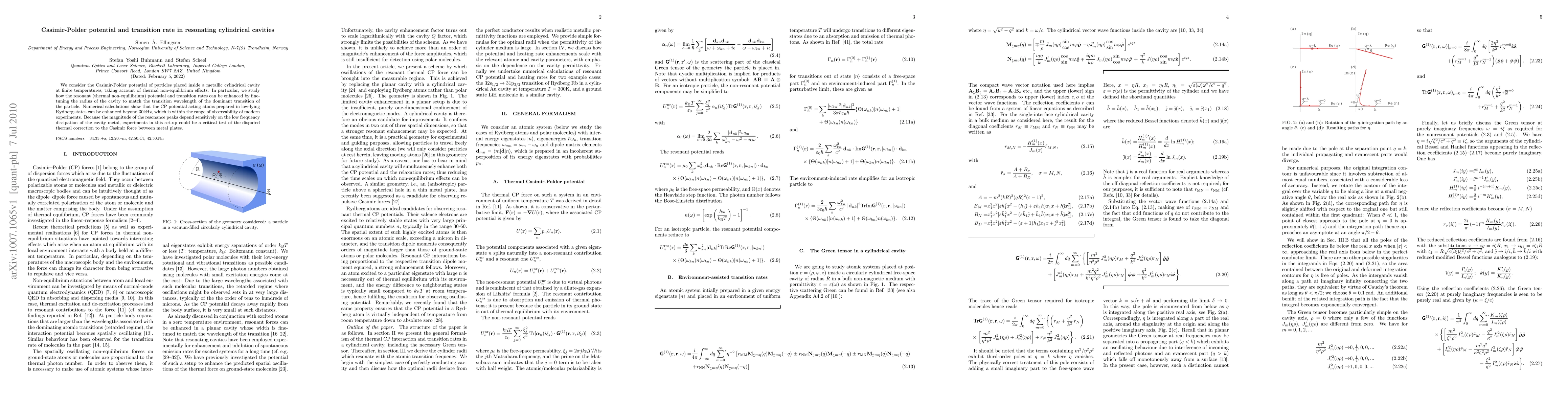 We consider the Casimir-Polder potential of particles placed inside a metallic cylindrical cavity at finite temperatures, taking account of thermal non-equilibrium effects. In particular, we study how the resonant (thermal non-equilibrium) potential and transition rates can be enhanced by fine-tuning the radius of the cavity to match the transition wavelength of the dominant transition of the particle. Numerical calculations show that the CP potential acting atoms prepared in low-lying Rydberg states can be enhanced beyond 30 kHz, which is within the range of observability of modern experiments. Because the magnitude of the resonance peaks depend sensitively on the low frequency dissipation of the cavity metal, experiments in this set-up could be a critical test of the disputed thermal correction to the Casimir force between metal plates.