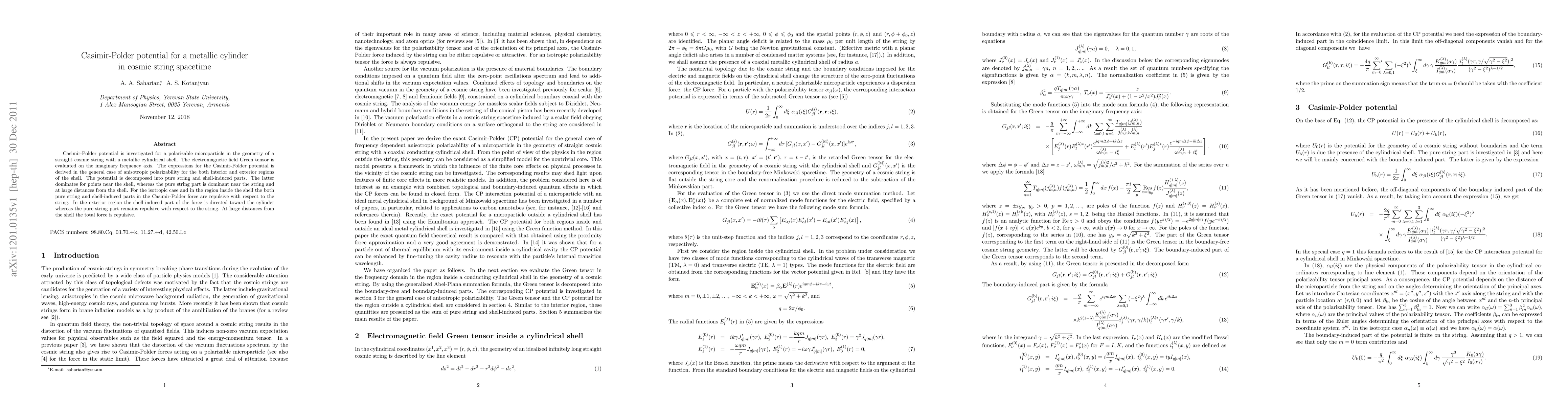 This research investigates the Casimir-Polder potential for a metallic cylinder in cosmic string spacetime, deriving expressions for both interior and exterior regions and demonstrating that the shell-induced potential dominates near the cylinder, while the pure string potential dominates at large distances.