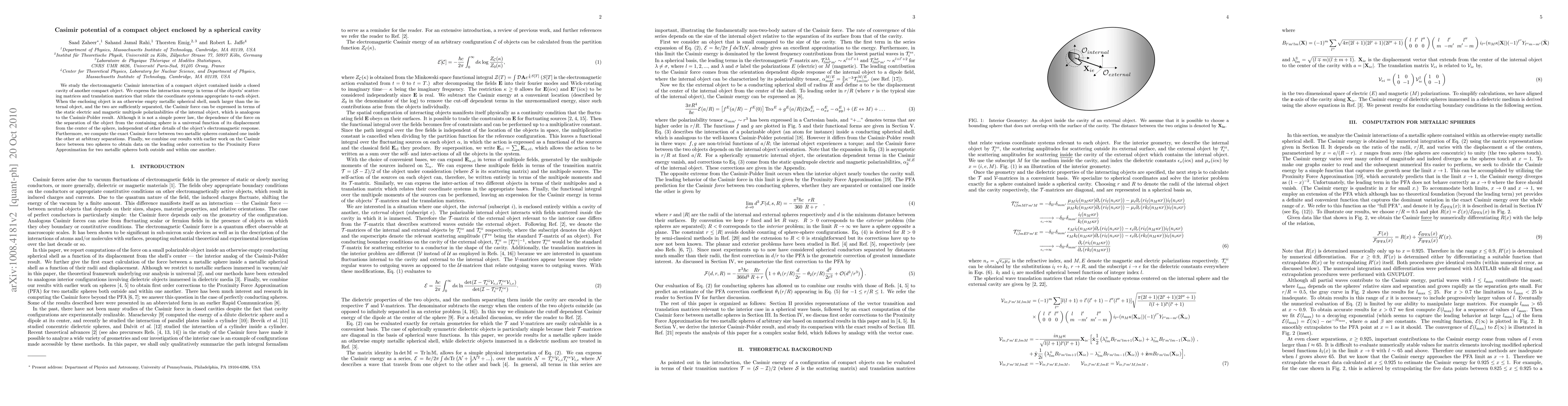 We study the electromagnetic Casimir interaction of a compact object contained inside a closed cavity of another compact object. We express the interaction energy in terms of the objects' scattering matrices and translation matrices that relate the coordinate systems appropriate to each object. When the enclosing object is an otherwise empty metallic spherical shell, much larger than the internal object, and the two are sufficiently separated, the Casimir force can be expressed in terms of the static electric and magnetic multipole polarizabilities of the internal object, which is analogous to the Casimir-Polder result. Although it is not a simple power law, the dependence of the force on the separation of the object from the containing sphere is a universal function of its displacement from the center of the sphere, independent of other details of the object's electromagnetic response. Furthermore, we compute the exact Casimir force between two metallic spheres contained one inside the other at arbitrary separations. Finally, we combine our results with earlier work on the Casimir force between two spheres to obtain data on the leading order correction to the Proximity Force Approximation for two metallic spheres both outside and within one another.