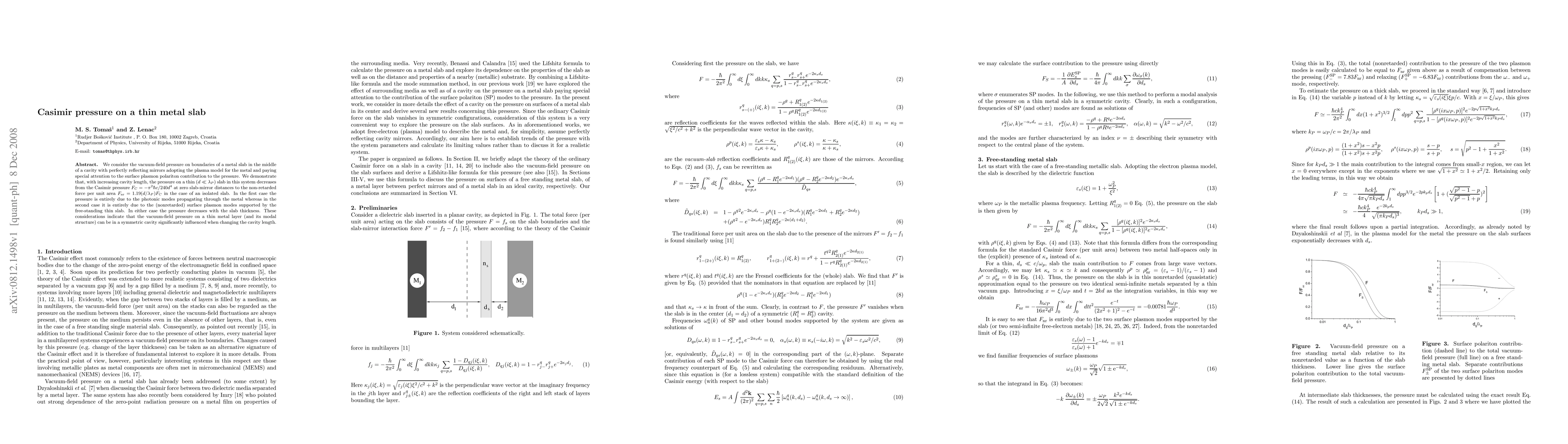 This study investigates the vacuum-field pressure on a thin metal slab in a symmetric cavity with reflecting mirrors, using the plasma model for the metal. It finds that pressure decreases from Casimir pressure to a non-retarded force as cavity length increases, highlighting the influence of surface plasmon polaritons.