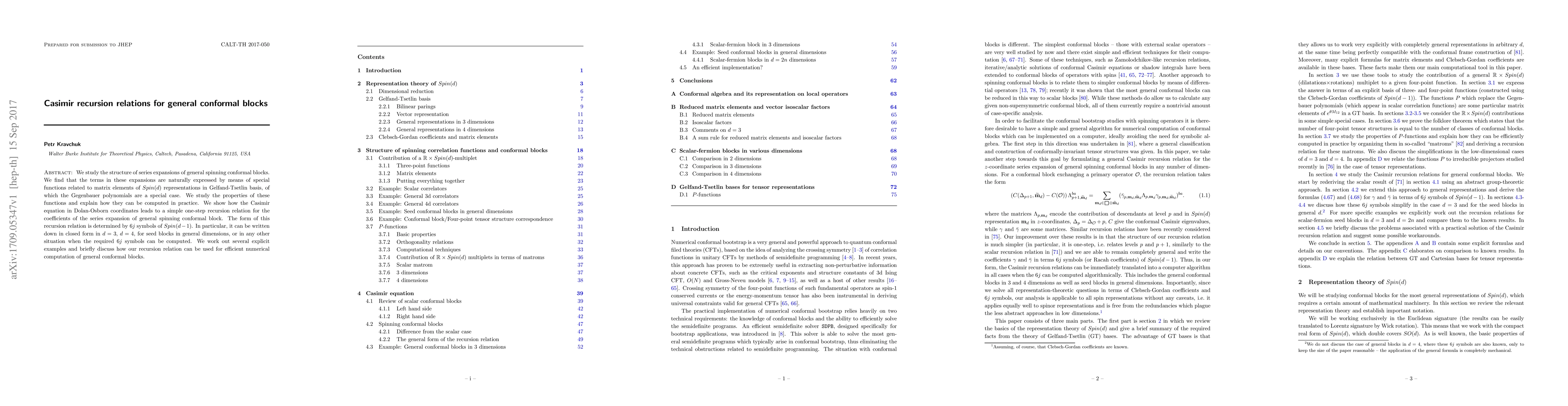 This paper explores the recursion relations for general spinning conformal blocks, revealing their connection to special functions derived from Spin(d) representations. The authors derive a simple one-step recursion relation for the coefficients in these expansions, determined by 6j symbols, which is particularly useful for efficient numerical computation in dimensions d=3 and d=4.