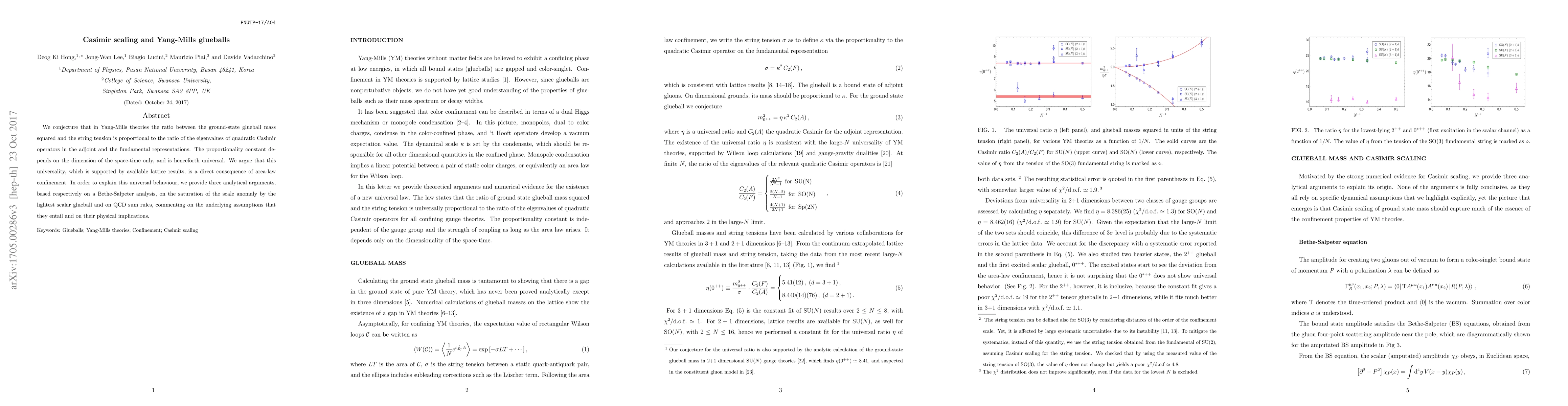 This paper proposes a conjecture linking the mass ratio of Yang-Mills glueballs to the eigenvalues of Casimir operators, asserting universality in the proportionality constant dependent solely on space-time dimensions. It supports this conjecture through lattice results and analytical arguments based on Bethe-Salpeter analysis, scale anomaly saturation, and QCD sum rules.