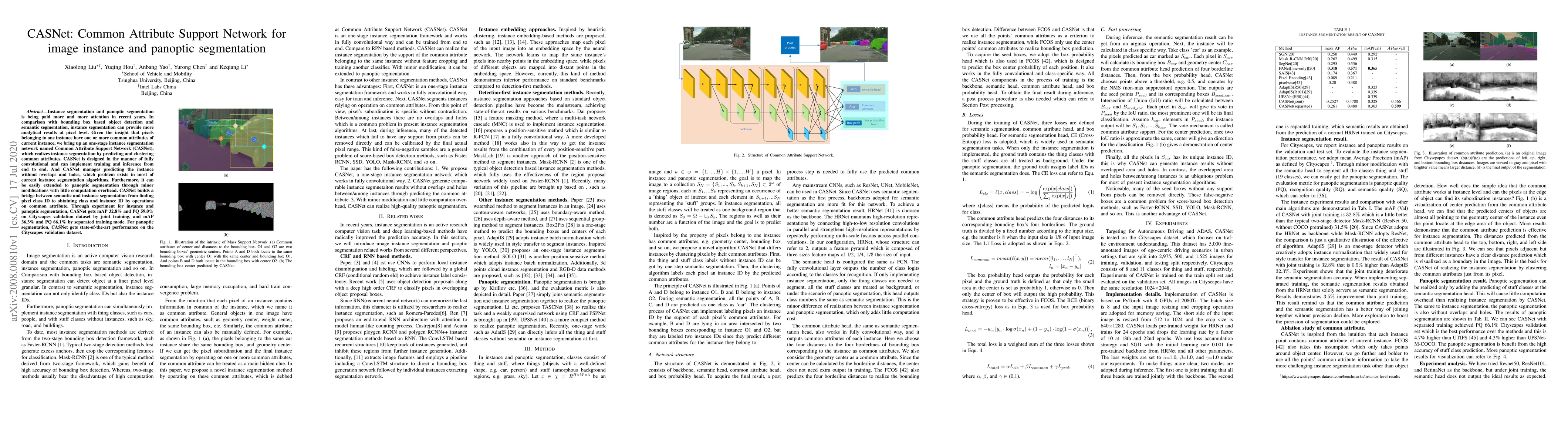CASNet is a one-stage instance segmentation network that predicts and clusters common attributes to achieve pixel-level segmentation without overlaps or holes. It can also be extended for panoptic segmentation with minimal modifications, achieving state-of-the-art performance on the Cityscapes dataset.
