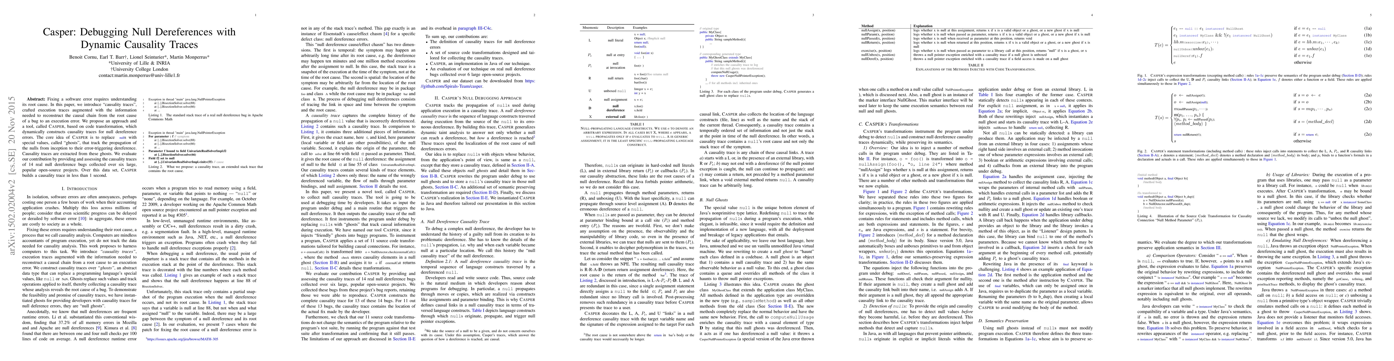 Fixing a software error requires understanding its root cause. In this paper, we introduce ''causality traces'', crafted execution traces augmented with the information needed to reconstruct the causal chain from the root cause of a bug to an execution error. We propose an approach and a tool, called Casper, for dynamically constructing causality traces for null dereference errors. The core idea of Casper is to inject special values, called ''ghosts'', into the execution stream to construct the causality trace at runtime. We evaluate our contribution by providing and assessing the causality traces of 14 real null dereference bugs collected over six large, popular open-source projects. Over this data set, Casper builds a causality trace in less than 5 seconds.