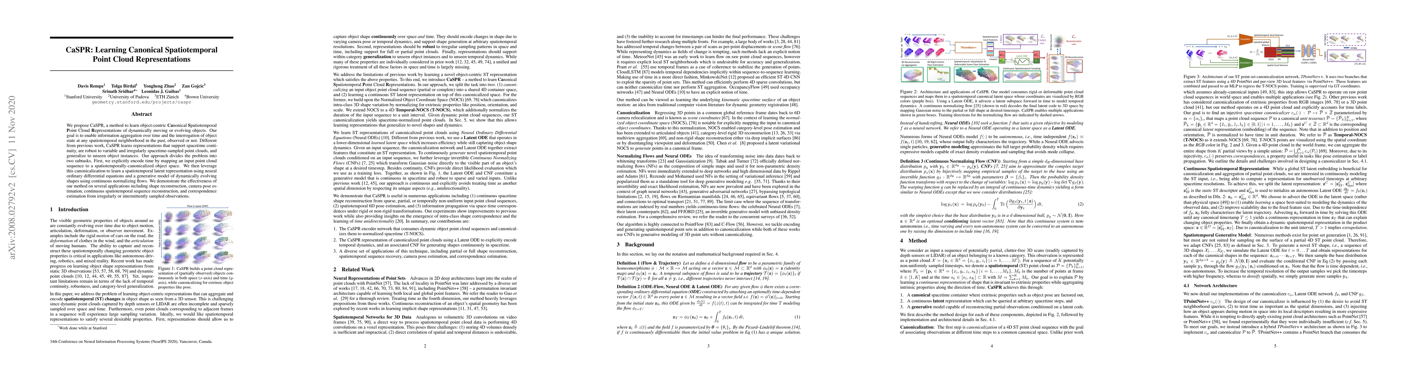 CaSPR learns object-centric representations of dynamic objects over time, enabling information aggregation and object state interrogation at any spatiotemporal neighborhood. The method achieves spacetime continuity and robustness to variable point cloud sampling.