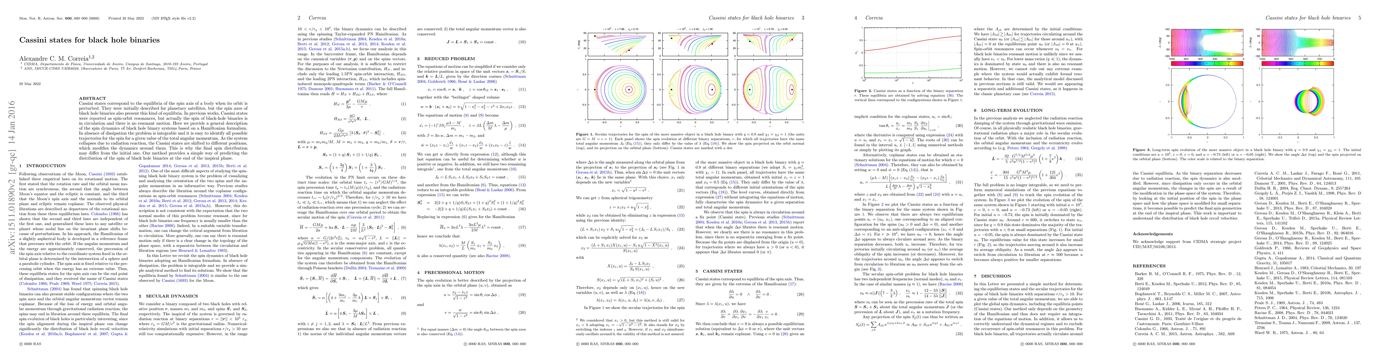 Cassini states correspond to the equilibria of the spin axis of a body when its orbit is perturbed. They were initially described for planetary satellites, but the spin axes of black hole binaries also present this kind of equilibria. In previous works, Cassini states were reported as spin-orbit resonances, but actually the spin of black hole binaries is in circulation and there is no resonant motion. Here we provide a general description of the spin dynamics of black hole binary systems based on a Hamiltonian formalism. In absence of dissipation the problem is integrable and it is easy to identify all possible trajectories for the spin for a given value of the total angular momentum. As the system collapses due to radiation reaction, the Cassini states are shifted to different positions, which modifies the dynamics around them. This is why the final spin distribution may differ from the initial one. Our method provides a simple way of predicting the distribution of the spin of black hole binaries at the end of the inspiral phase.