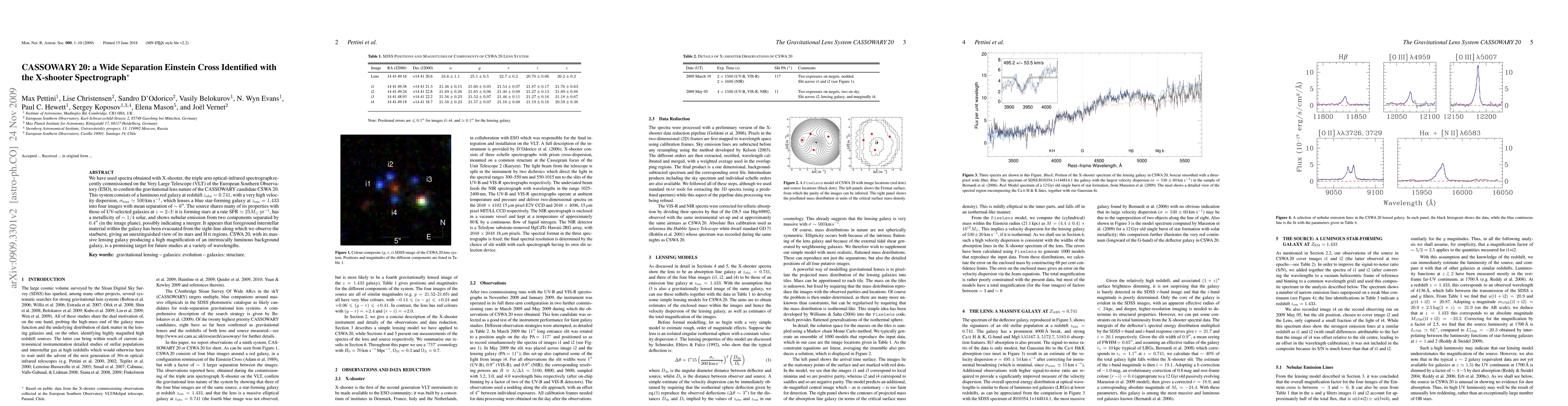 Astronomers confirmed that a distant galaxy, CSWA 20, is being gravitationally lensed by a nearby massive galaxy, producing four images of a star-forming galaxy at a redshift of 1.433. The findings were made possible by the X-shooter Spectrograph on the Very Large Telescope.