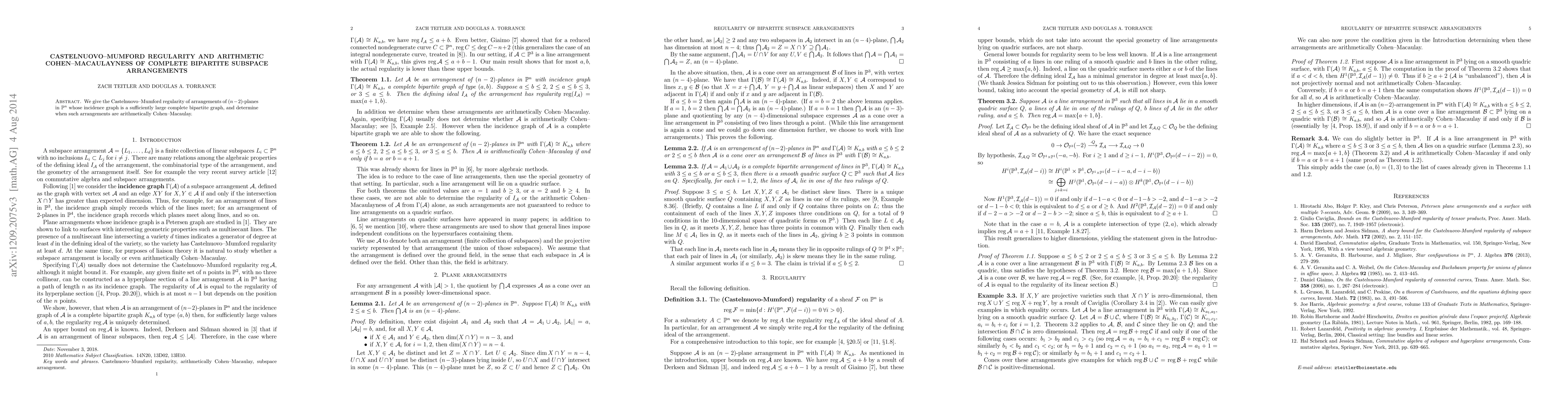 We give the Castelnuovo-Mumford regularity of arrangements of (n-2)-planes in P^n whose incidence graph is a sufficiently large complete bipartite graph, and determine when such arrangements are arithmetically Cohen-Macaulay.