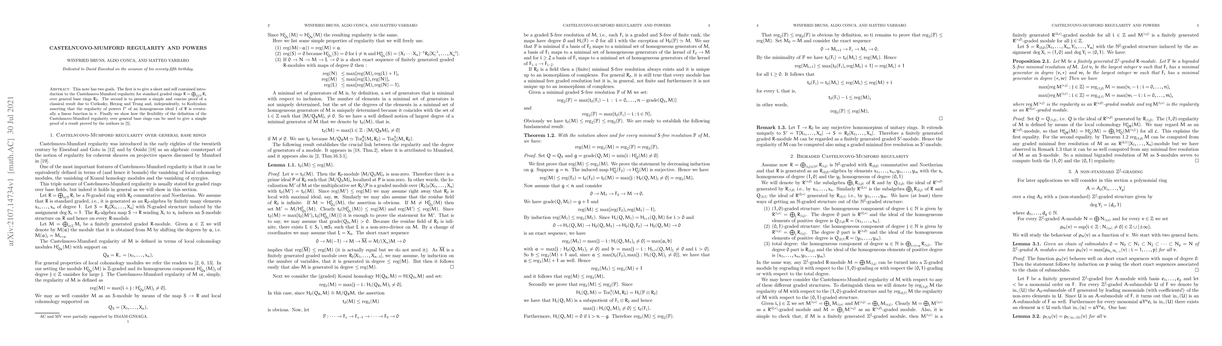 This note has two goals. The first is to give a short and self contained introduction to the Castelnuovo-Mumford regularity for standard graded ring $R$ over a general base ring. The second is to present a simple and concise proof of a classical result due to Cutkosky, Herzog and Trung and, independently, to Kodiyalam asserting that the regularity of powers of an homogeneous ideal $I$ of $R$ is eventually a linear function in $v$. Finally we show how the flexibility of the definition of the Castelnuovo-Mumford regularity over general base rings can be used to give a simple characterization of the ideals whose powers have a linear resolution in terms of the regularity of the Rees ring.