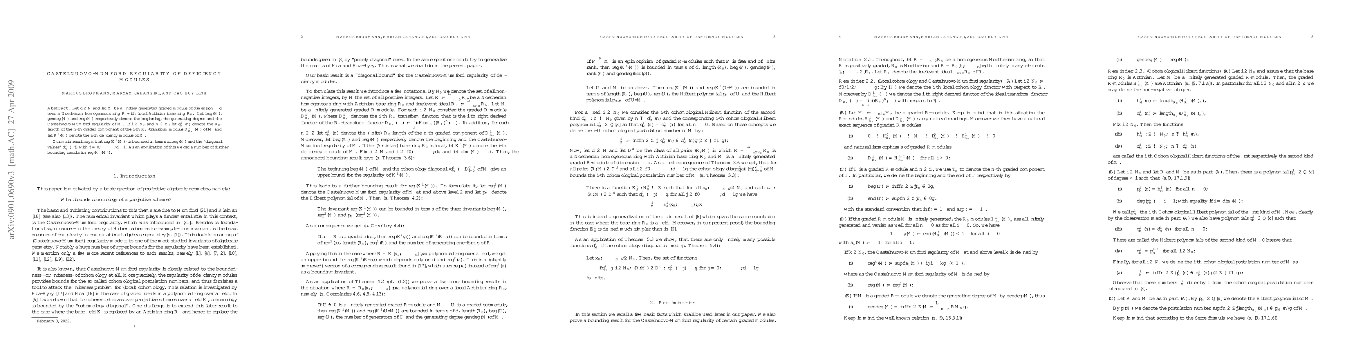This paper investigates the Castelnuovo-Mumford regularity of deficiency modules, showing that it is bounded in terms of the beginning degree of the module and certain diagonal values derived from its graded components. The results also provide additional bounds for the regularity of these deficiency modules.