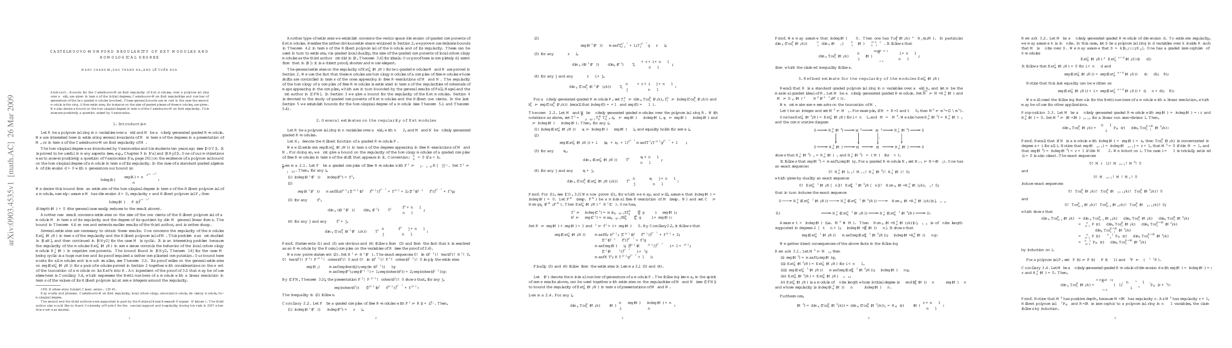Bounds for the Castelnuovo-Mumford regularity of Ext modules, over a polynomial ring over a field, are given in terms of the initial degrees, Castelnuovo-Mumford regularities and number of generators of the two graded modules involved. These general bounds are refined in the case the second module is the ring. Other estimates, for instance on the size of graded pieces of these modules, are given. We also derive a bound on the homological degree in terms of the Castelnuovo-Mumford regularity. This answers positively a question raised by Vasconcelos.