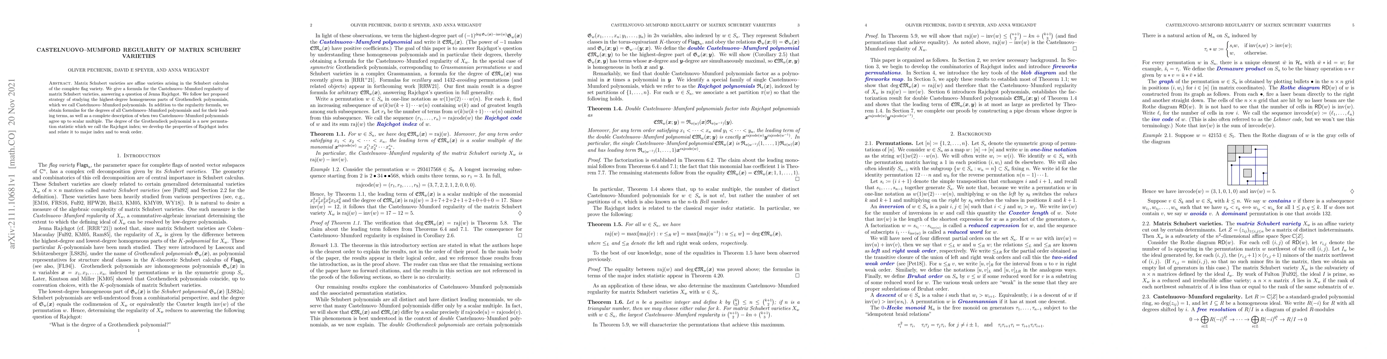 This paper provides a formula for the Castelnuovo-Mumford regularity of matrix Schubert varieties, following Jenna Rajchgot's strategy involving the highest-degree parts of Grothendieck polynomials. It also introduces the Rajchgot index, a new permutation statistic, and relates it to major index and weak order.