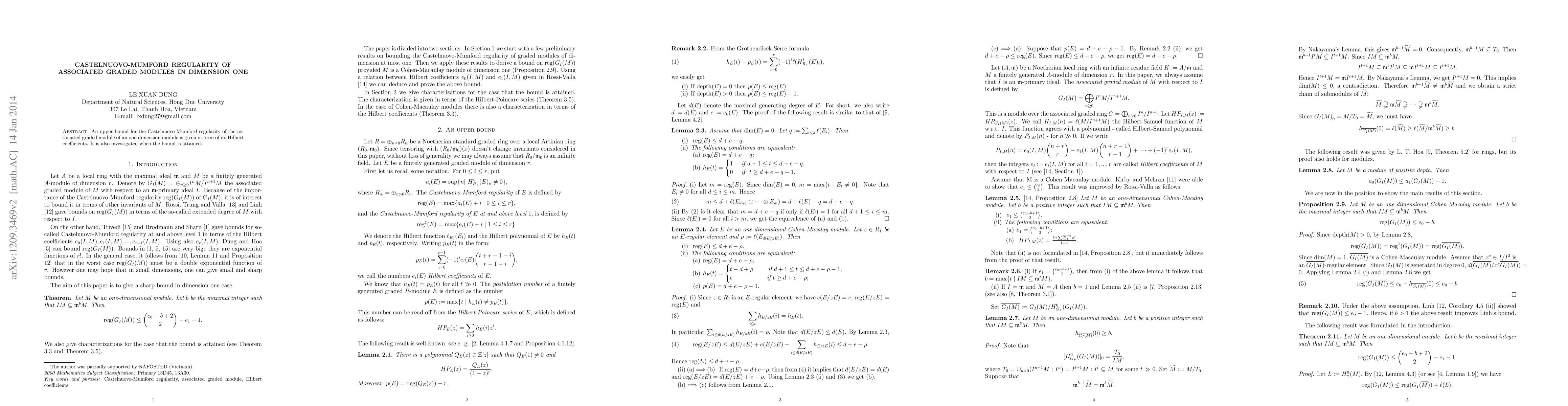 Summary: The paper provides an upper bound for the Castelnuovo-Mumford regularity of the associated graded module of a one-dimensional module, expressed in terms of its Hilbert coefficients, and explores conditions under which the bound is achieved.