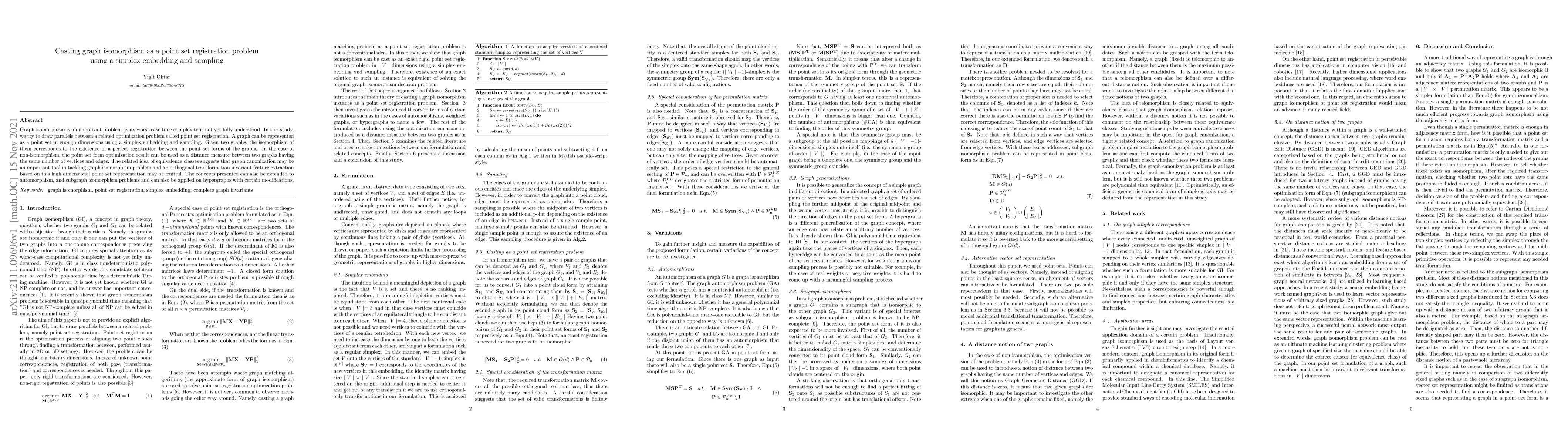 Researchers explore a new approach to graph isomorphism by casting it as a point set registration problem using a simplex embedding and sampling, offering potential for efficient solutions and orthogonal feature extraction.