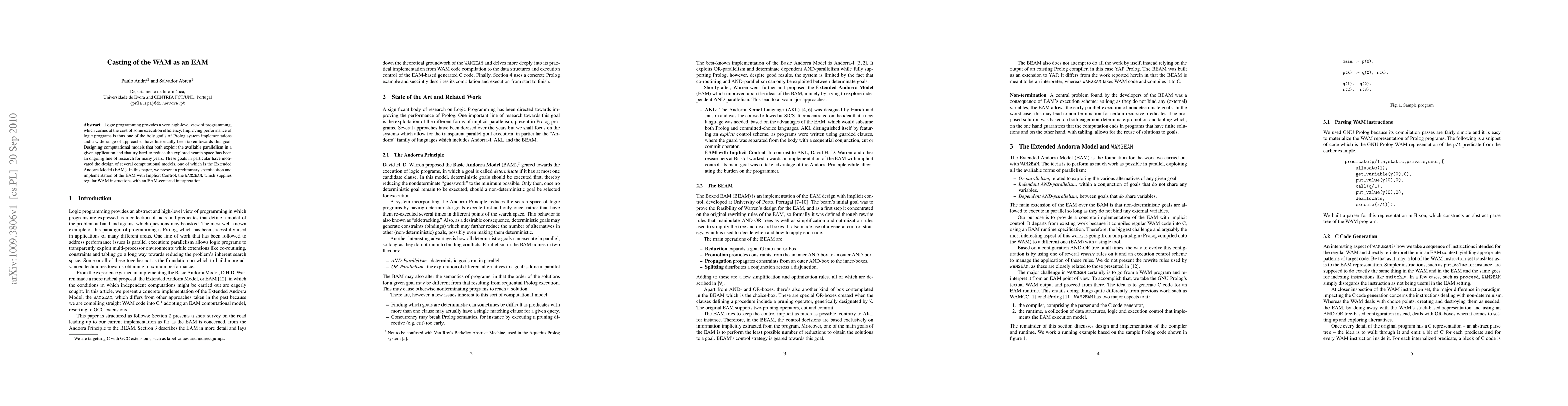 Logic programming provides a very high-level view of programming, which comes at the cost of some execution efficiency. Improving performance of logic programs is thus one of the holy grails of Prolog system implementations and a wide range of approaches have historically been taken towards this goal. Designing computational models that both exploit the available parallelism in a given application and that try hard to reduce the explored search space has been an ongoing line of research for many years. These goals in particular have motivated the design of several computational models, one of which is the Extended Andorra Model (EAM). In this paper, we present a preliminary specification and implementation of the EAM with Implicit Control, the WAM2EAM, which supplies regular WAM instructions with an EAM-centered interpretation.