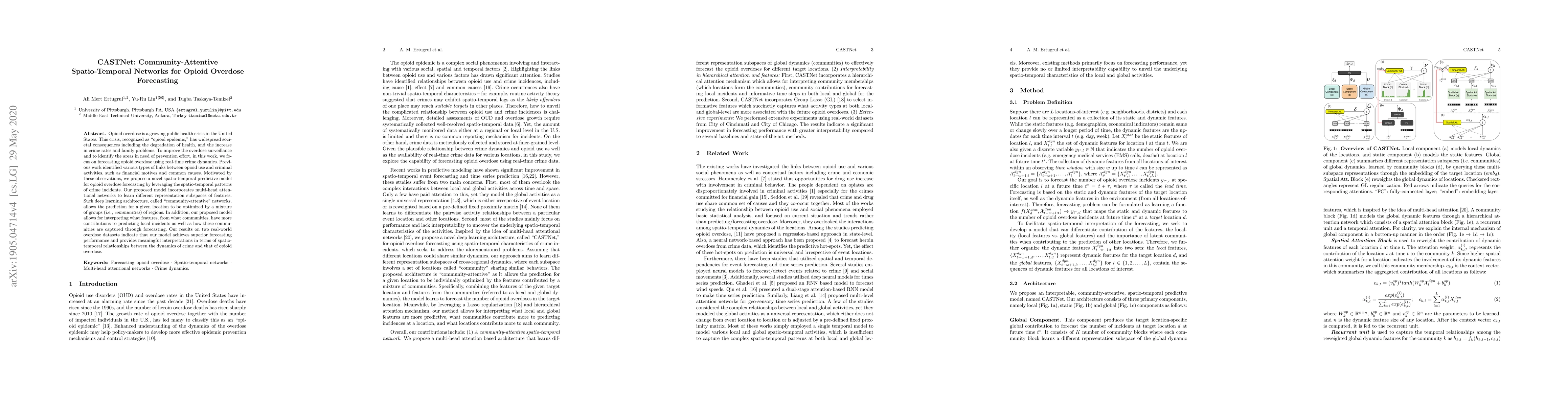 This paper proposes a novel "Community-Attentive Spatio-Temporal Networks" (CASTNet) model to forecast opioid overdoses by leveraging spatio-temporal crime patterns. The model uses multi-head attentional networks to optimize predictions based on community-specific regional features, achieving superior performance and interpretability.