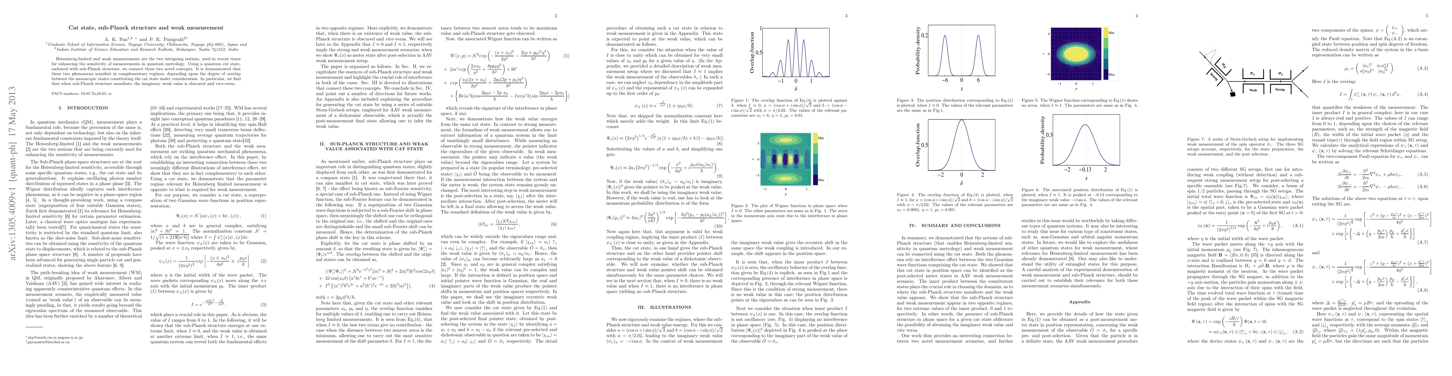 Heisenberg-limited and weak measurements are the two intriguing notions, used in recent times for enhancing the sensitivity of measurements in quantum metrology. Using a quantum cat state, endowed with sub-Planck structure, we connect these two novel concepts. It is demonstrated that these two phenomena manifest in complementary regimes, depending upon the degree of overlap between the mesoscopic states constituting the cat state under consideration. In particular, we find that when sub-Planck structure manifests, the imaginary weak value is obscured and vice-versa.