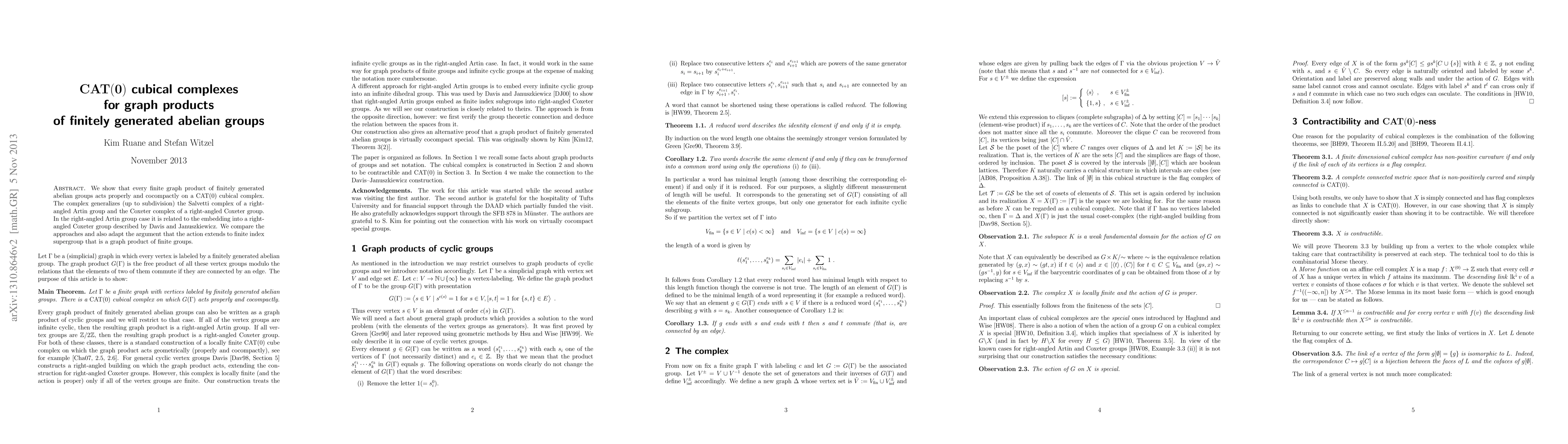 Researchers demonstrate that graph products of finitely generated abelian groups act properly on a CAT(0) cubical complex, which is related to well-known complexes in Artin and Coxeter groups.