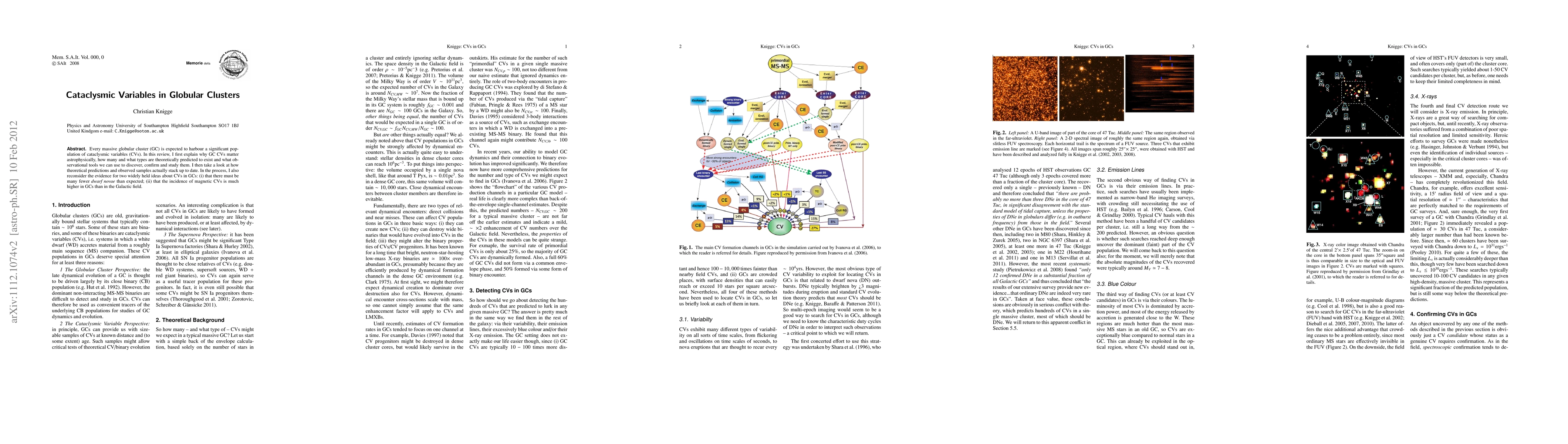 This review explores the astrophysical significance of cataclysmic variables (CVs) in massive globular clusters (GCs), detailing theoretical predictions and observational methods for their discovery. It also examines the discrepancies between theoretical predictions and observed data, particularly questioning the prevalence of dwarf novae and the incidence of magnetic CVs in GCs compared to the Galactic field.