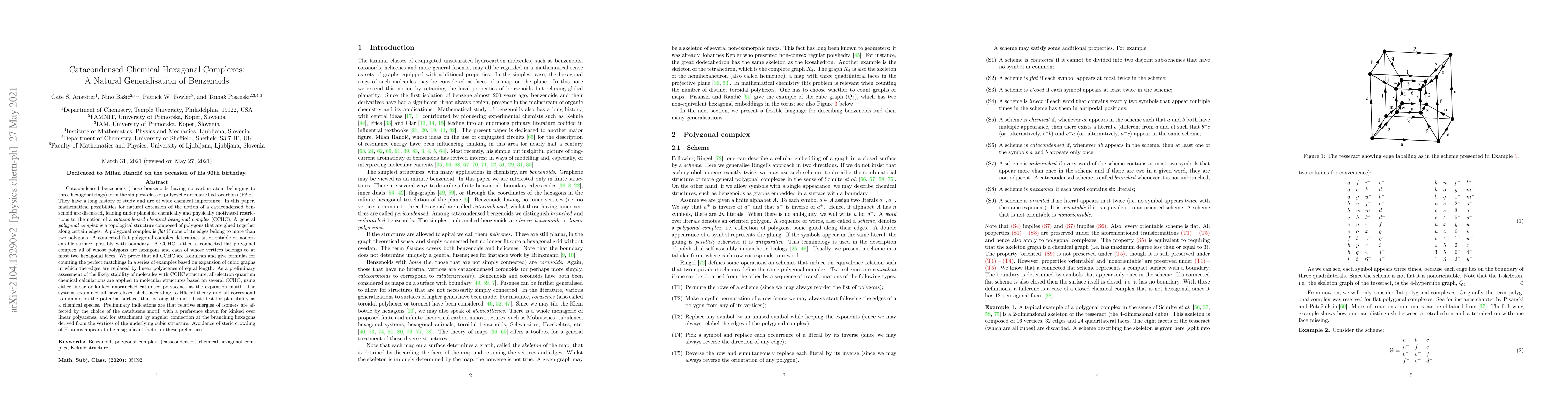 Researchers discovered a natural generalization of benzenoids called Catacondensed Chemical Hexagonal Complexes (CCHCs), which are flat polygonal complexes composed of hexagons with limited edge connections. The study finds that CCHCs are Kekulean and have stable molecular structures, suggesting their potential as plausible chemical species.