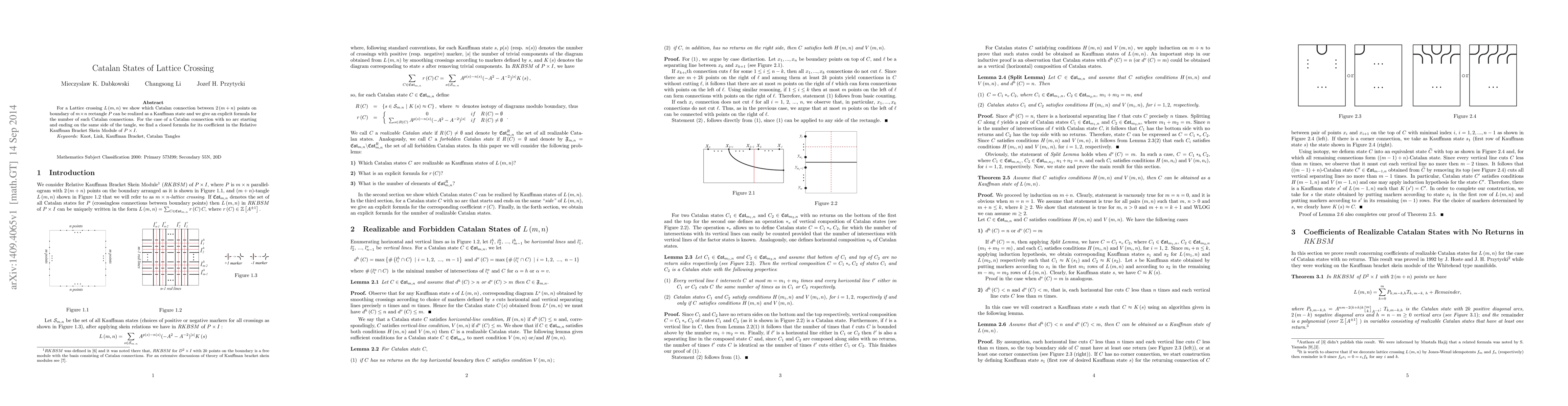 This paper explores the relationship between Catalan connections and Kauffman states in lattice crossings, providing an explicit formula for the number of such connections and a closed formula for the coefficient of specific Catalan connections in the Relative Kauffman Bracket Skein Module.