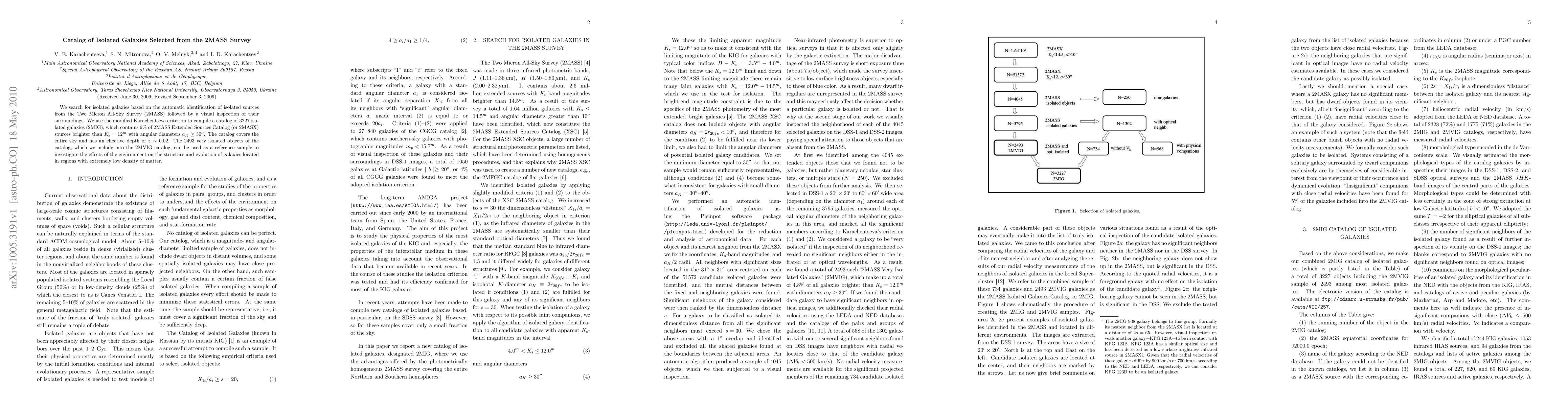 This paper catalogs 3227 isolated galaxies identified from the 2MASS survey using a modified Karachentseva criterion, representing 6% of brighter sources. The 2493 very isolated galaxies in the 2MVIG subset serve as a reference for studying environmental effects on galaxy structure and evolution.