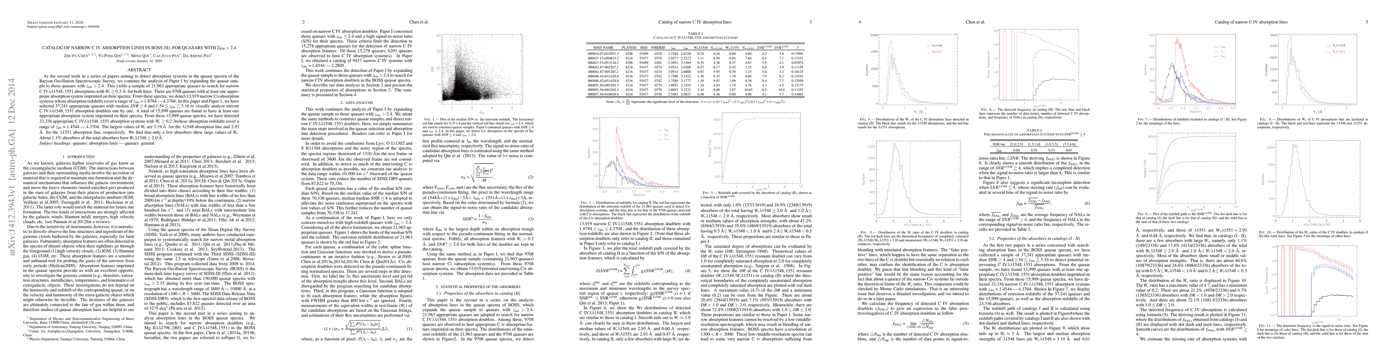 This paper catalogs narrow C IV absorption lines in quasar spectra from the BOSS survey for quasars with redshifts greater than 2.4, detecting 13,919 such systems across a redshift range of 1.8784 to 4.3704, with only a small fraction exhibiting large absorption widths.
