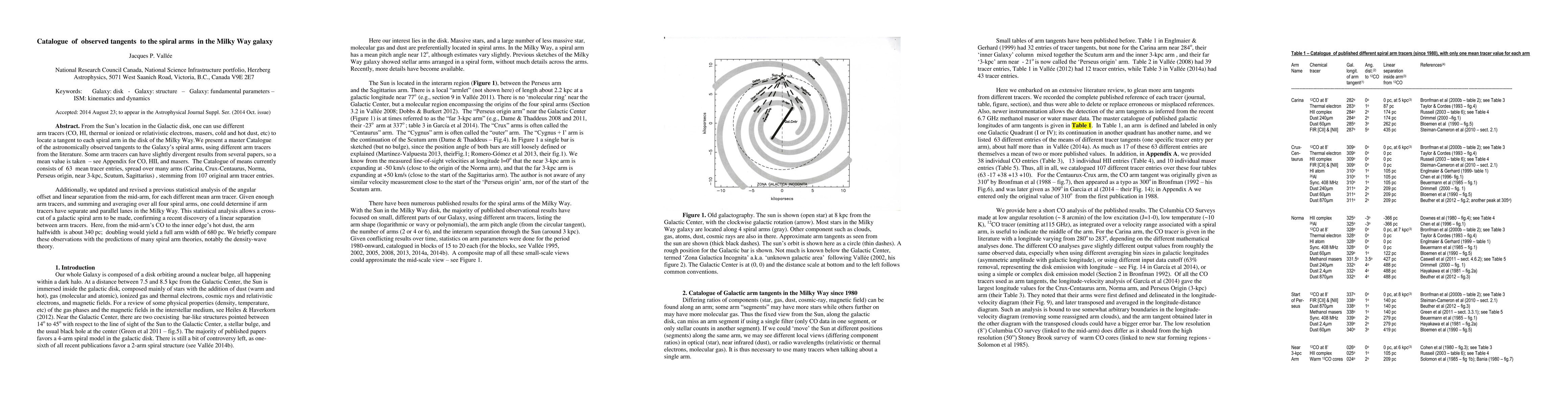 This paper catalogs observed tangents to the Milky Way's spiral arms using various tracers, compiling a Master catalog with 63 mean tracer entries from 107 original sources. It also updates statistical analysis on the separation between arm tracers, supporting the discovery of a linear separation between them, and compares these findings with density wave theory.