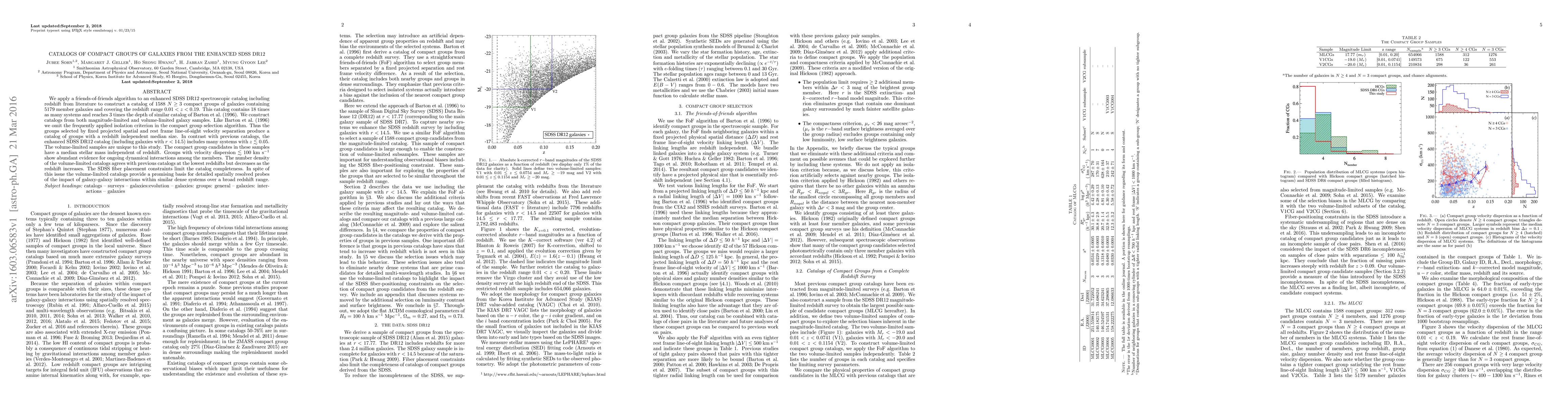 The study constructs a catalog of 1588 compact galaxy groups from an enhanced SDSS DR12 catalog, 18 times larger than previous ones, covering 0.01 < z < 0.19. It omits isolation criteria, ensuring redshift-independent group sizes, and includes galaxies up to r < 14.5, revealing many low-z systems. Volume-limited samples show median stellar mass independence from redshift, with low velocity dispersion groups exhibiting interaction signs. Despite incomplete catalog due to fiber placement constraints, these volume-limited catalogs offer a solid foundation for studying galaxy interaction impacts in dense systems across a broad redshift range.
