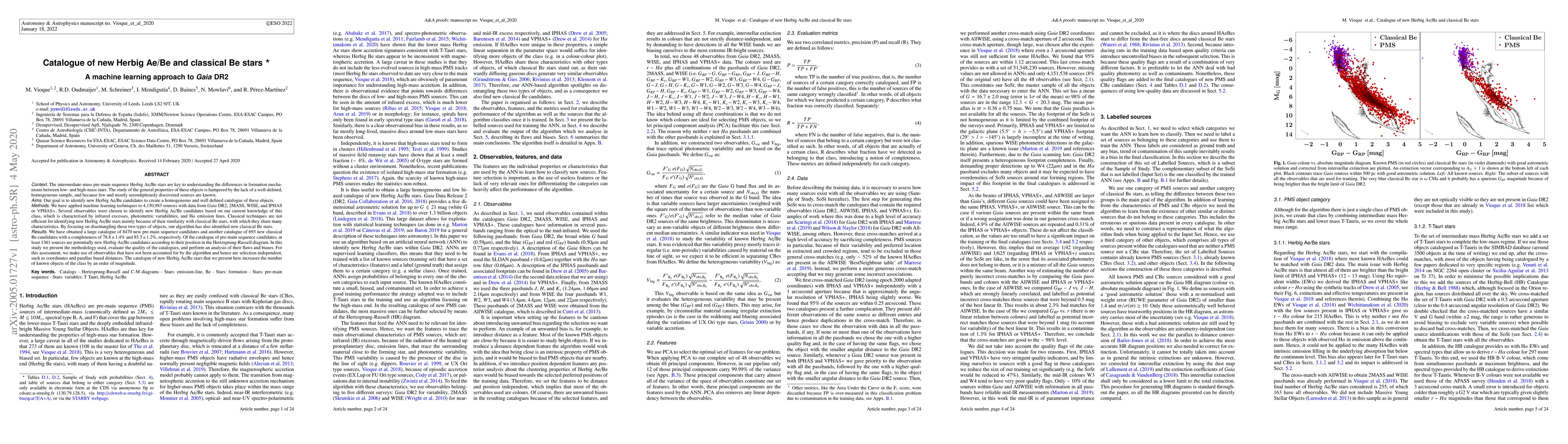 The intermediate-mass pre-main sequence Herbig Ae/Be stars are key to understanding the differences in formation mechanisms between low- and high-mass stars. The study of the general properties of these objects is hampered by the fact that few and mostly serendipitously discovered sources are known. Our goal is to identify new Herbig Ae/Be candidates to create a homogeneous and well defined catalogue of these objects. We have applied machine learning techniques to 4,150,983 sources with data from Gaia DR2, 2MASS, WISE, and IPHAS or VPHAS+. Several observables were chosen to identify new Herbig Ae/Be candidates based on our current knowledge of this class, which is characterised by infrared excesses, photometric variabilities, and H$\alpha$ emission lines. Classical techniques are not efficient for identifying new Herbig Ae/Be stars mainly because of their similarity with classical Be stars, with which they share many characteristics. By focusing on disentangling these two types of objects, our algorithm has also identified new classical Be stars. We have obtained a large catalogue of 8470 new pre-main sequence candidates and another catalogue of 693 new classical Be candidates with a completeness of $78.8\pm1.4\%$ and $85.5\pm1.2\%$, respectively. Of the catalogue of pre-main sequence candidates, at least 1361 sources are potentially new Herbig Ae/Be candidates according to their position in the Hertzsprung-Russell diagram. In this study we present the methodology used, evaluate the quality of the catalogues, and perform an analysis of their flaws and biases. For this assessment, we make use of observables that have not been accounted for by the algorithm and hence are selection-independent, such as coordinates and parallax based distances. The catalogue of new Herbig Ae/Be stars that we present here increases the number of known objects of the class by an order of magnitude.