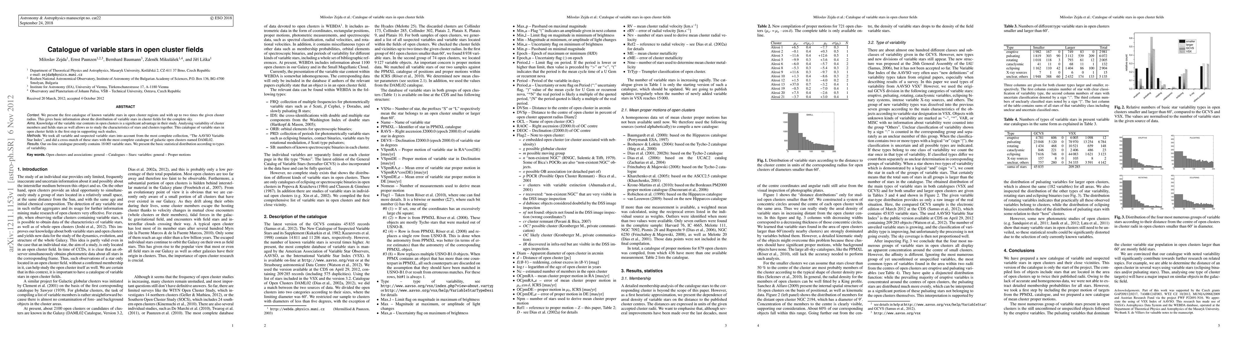 We present the first catalogue of known variable stars in open cluster regions and with up to two times the given cluster radius. This gives basic information about the distribution of variable stars in cluster fields for the complete sky. Knowledge of the variable star contents in open clusters is a significant advantage in their study. Analysing variability of cluster members and fields stars as well, allows us to study the characteristics of stars and clusters together. This catalogue of variable stars in open cluster fields is the first step in supporting such studies. We took all variable and suspected variable stars into account from the most complete collection, "The AAVSO Variable Star Index", and did a cross-match of these stars with the most complete catalogue of galactic open clusters named DAML02. Our on-line catalogue presently contains 18 065 variable stars. We present the basic statistical distribution according to types of variability.
