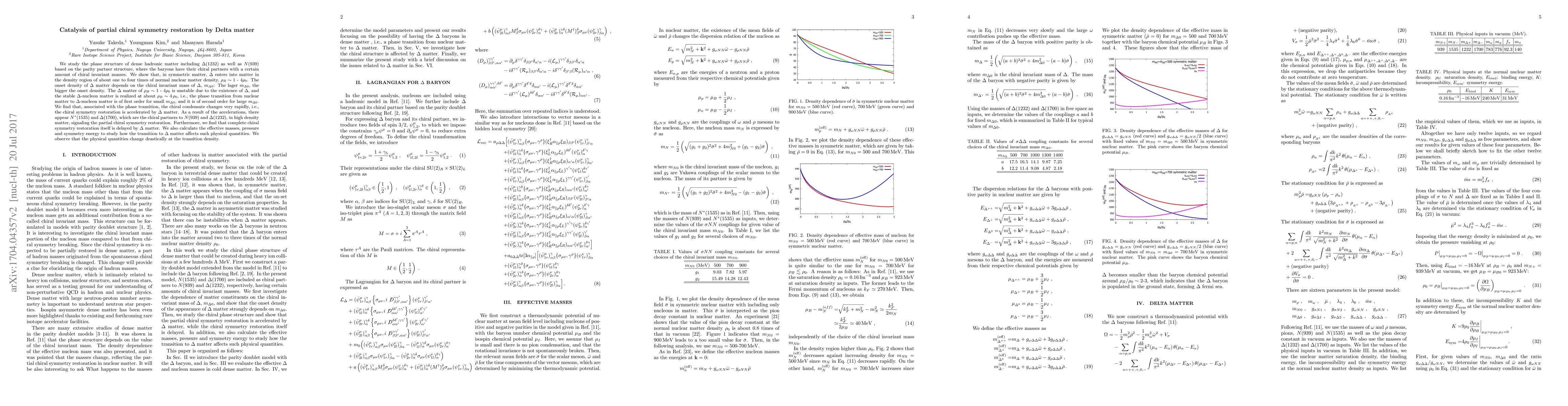 This paper investigates the phase structure of dense hadronic matter, focusing on the role of $\Delta$ resonances in partial chiral symmetry restoration. It finds that $\Delta$ matter accelerates chiral symmetry restoration during the transition from nuclear to $\Delta$-nucleon matter, leading to the appearance of chiral partner resonances $N^*$(1535) and $\Delta$(1700).
