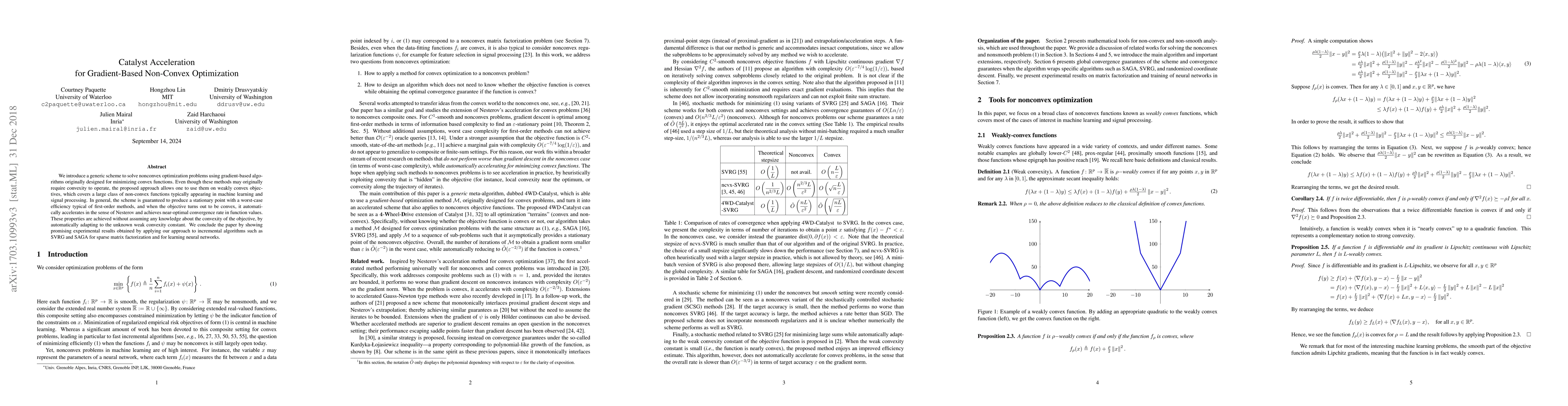 We introduce a generic scheme to solve nonconvex optimization problems using gradient-based algorithms originally designed for minimizing convex functions. Even though these methods may originally require convexity to operate, the proposed approach allows one to use them on weakly convex objectives, which covers a large class of non-convex functions typically appearing in machine learning and signal processing. In general, the scheme is guaranteed to produce a stationary point with a worst-case efficiency typical of first-order methods, and when the objective turns out to be convex, it automatically accelerates in the sense of Nesterov and achieves near-optimal convergence rate in function values. These properties are achieved without assuming any knowledge about the convexity of the objective, by automatically adapting to the unknown weak convexity constant. We conclude the paper by showing promising experimental results obtained by applying our approach to incremental algorithms such as SVRG and SAGA for sparse matrix factorization and for learning neural networks.