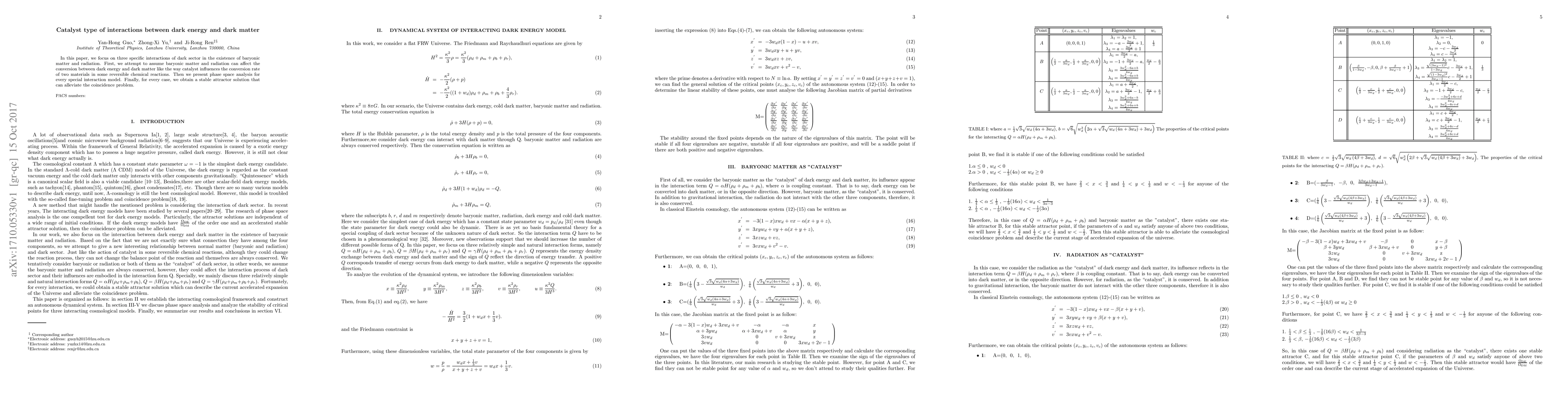 In this paper, we focus on three specific interactions of dark sector in the existence of baryonic matter and radiation. First, we attempt to assume baryonic matter and radiation can affect the conversion between dark energy and dark matter like the way catalyst influences the conversion rate of two materials in some reversible chemical reactions. Then we present phase space analysis for every special interaction model. Finally, for every case, we obtain a stable attractor solution that can alleviate the coincidence problem.