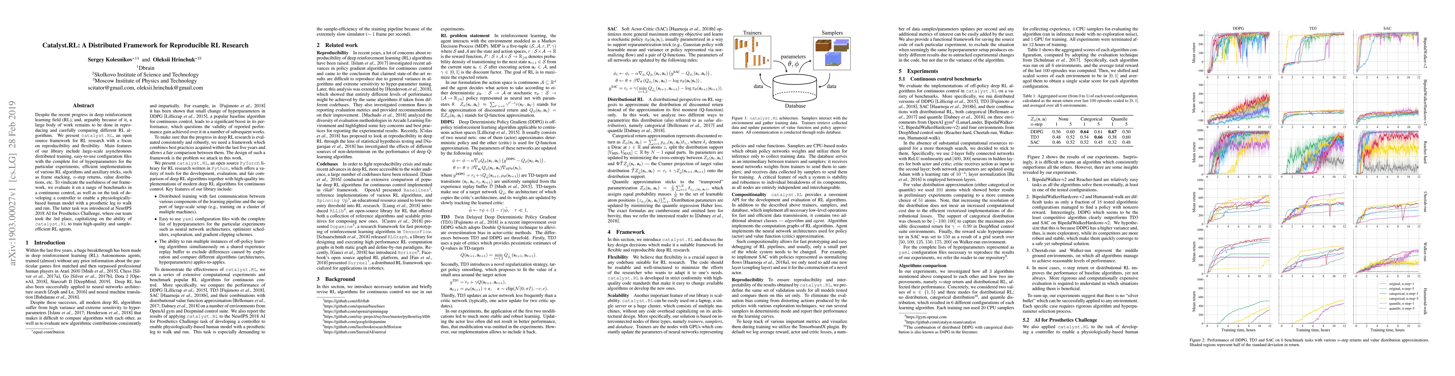 A new open-source framework called catalyst.RL provides a flexible and reproducible platform for reinforcement learning research, enabling the efficient training of high-quality RL agents on various tasks.