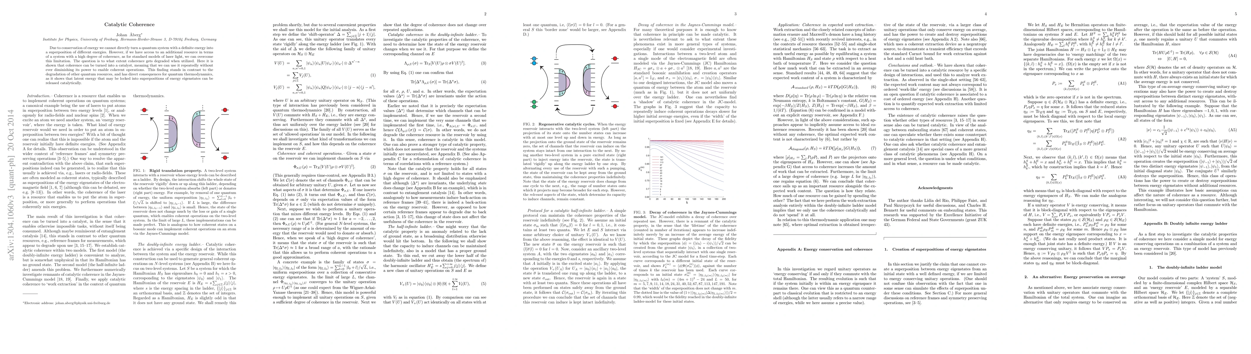 This paper demonstrates that coherence can act as a catalyst in quantum systems, enabling repeated use without degradation, contrasting with the usual depletion of other quantum resources. This finding has significant implications for quantum thermodynamics by revealing a method to release latent energy from superpositions of energy eigenstates.