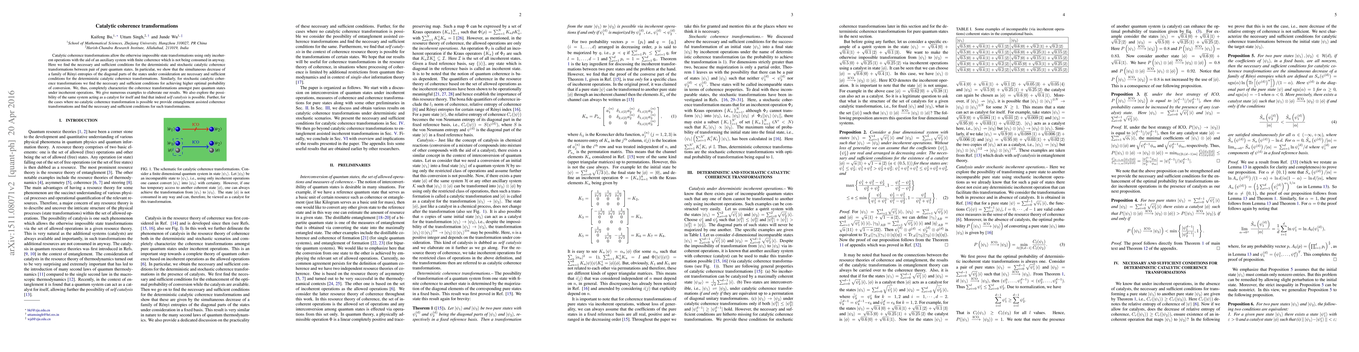 This paper explores catalytic coherence transformations in quantum mechanics, identifying conditions for both deterministic and stochastic transformations between pure quantum states using incoherent operations. It characterizes these transformations, including self-catalysis and entanglement-assisted alternatives, providing necessary and sufficient conditions for each scenario.