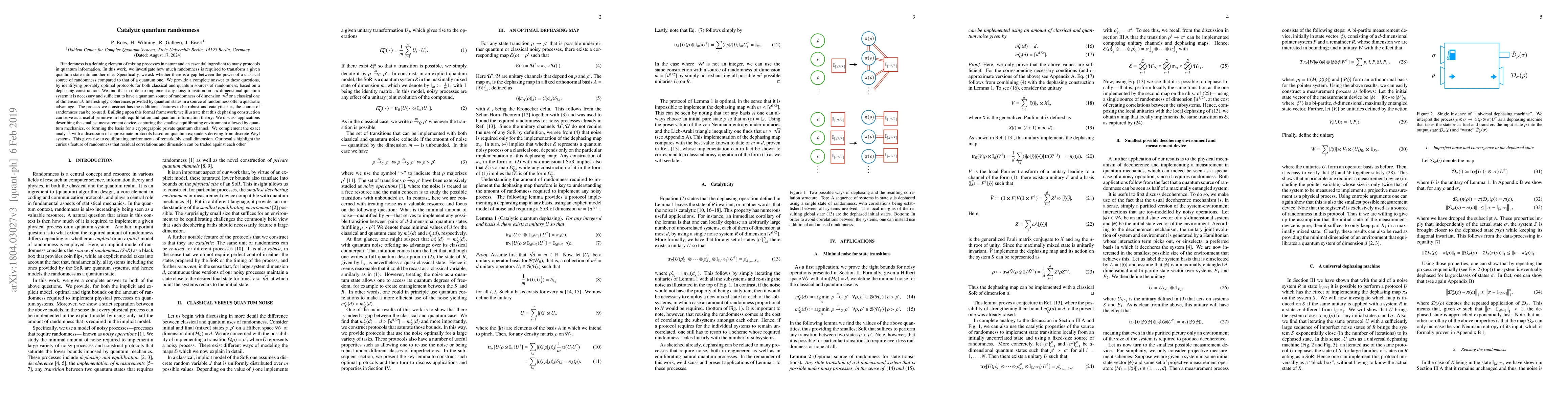 Randomness is a defining element of mixing processes in nature and an essential ingredient to many protocols in quantum information. In this work, we investigate how much randomness is required to transform a given quantum state into another one. Specifically, we ask whether there is a gap between the power of a classical source of randomness compared to that of a quantum one. We provide a complete answer to these questions, by identifying provably optimal protocols for both classical and quantum sources of randomness, based on a dephasing construction. We find that in order to implement any noisy transition on a $d$-dimensional quantum system it is necessary and sufficient to have a quantum source of randomness of dimension $\sqrt{d}$ or a classical one of dimension $d$. Interestingly, coherences provided by quantum states in a source of randomness offer a quadratic advantage. The process we construct has the additional features to be robust and catalytic, i.e., the source of randomness can be re-used. Building upon this formal framework, we illustrate that this dephasing construction can serve as a useful primitive in both equilibration and quantum information theory: We discuss applications describing the smallest measurement device, capturing the smallest equilibrating environment allowed by quantum mechanics, or forming the basis for a cryptographic private quantum channel. We complement the exact analysis with a discussion of approximate protocols based on quantum expanders deriving from discrete Weyl systems. This gives rise to equilibrating environments of remarkably small dimension. Our results highlight the curious feature of randomness that residual correlations and dimension can be traded against each other.