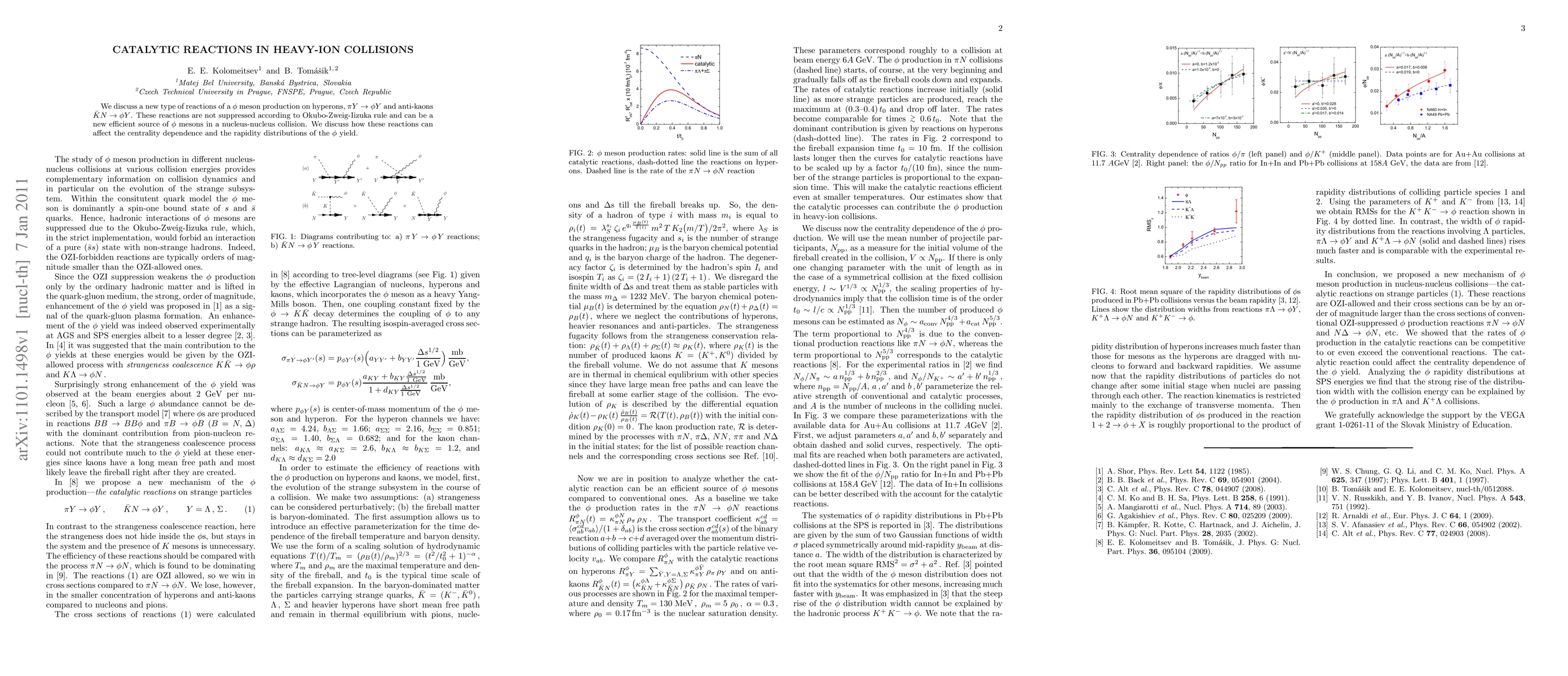 We discuss a new type of reactions of a phi meson production on hyperons, pi Y--> phi Y and anti-kaons bar-K N --> phi Y. These reactions are not suppressed according to Okubo-Zweig-Iizuka rule and can be a new efficient source of phi mesons in a nucleus-nucleus collision. We discuss how these reactions can affect the centrality dependence and the rapidity distributions of the phi yield.