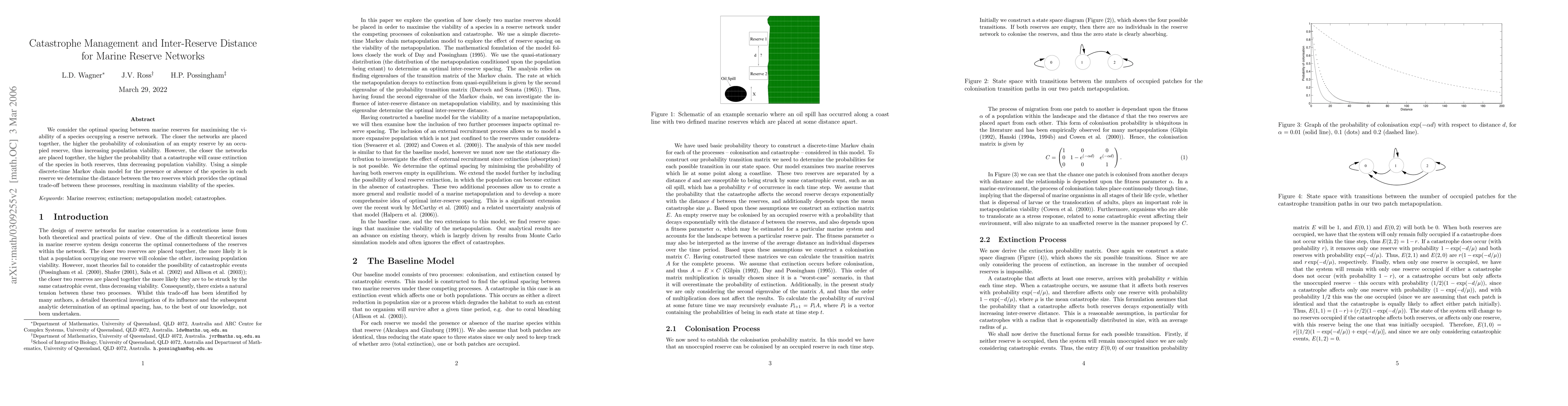 Researchers found that optimal spacing between marine reserves depends on balancing species colonization and catastrophe extinction risks. They determined a distance between reserves that maximizes species viability.