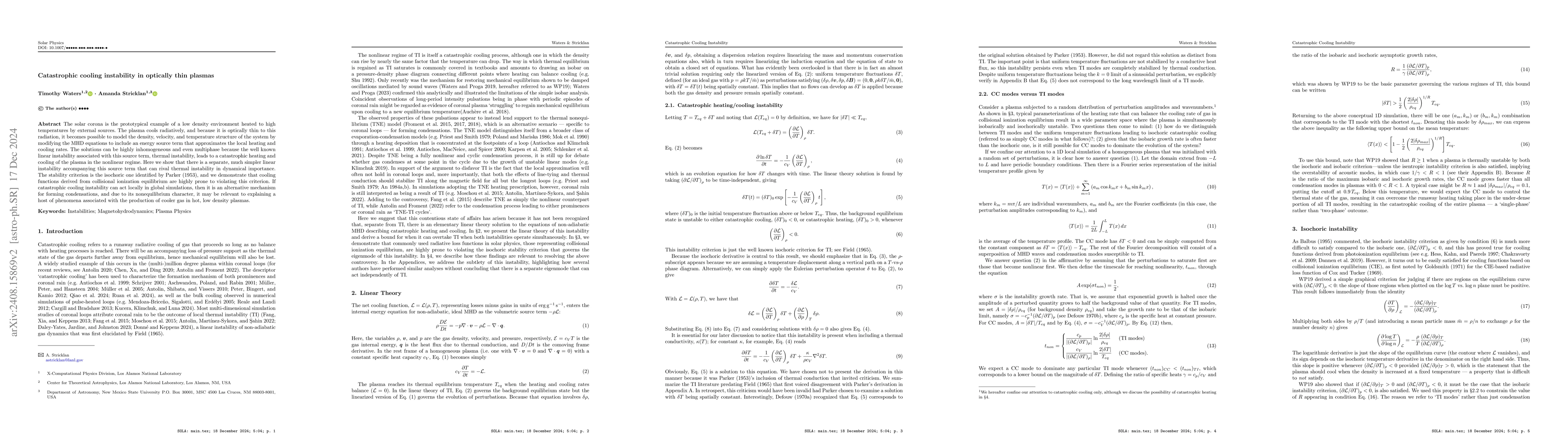 The solar corona is the prototypical example of a low density environment heated to high temperatures by external sources. The plasma cools radiatively, and because it is optically thin to this radiation, it becomes possible to model the density, velocity, and temperature structure of the system by modifying the MHD equations to include energy source terms that approximate the local heating and cooling rates. The solutions can be highly inhomogeneous and even multiphase because the well known linear instability associated with these source terms, thermal instability, leads to a catastrophic heating and cooling of the plasma in the nonlinear regime. Here we show that there is a separate, much simpler instance of catastrophic heating and cooling accompanying these source terms that can rival thermal instability in dynamical importance. The linear stability criterion is the isochoric one identified by Parker (1953), and we demonstrate that cooling functions derived from collisional ionization equilibrium are highly prone to violating this criterion. If catastrophic cooling instability can act locally in global simulations, then it is an alternative mechanism for forming condensations, and due to its nonequilibrium character, it may be relevant to explaining a host of phenomena associated with the production of cooler gas in hot, low density plasmas.