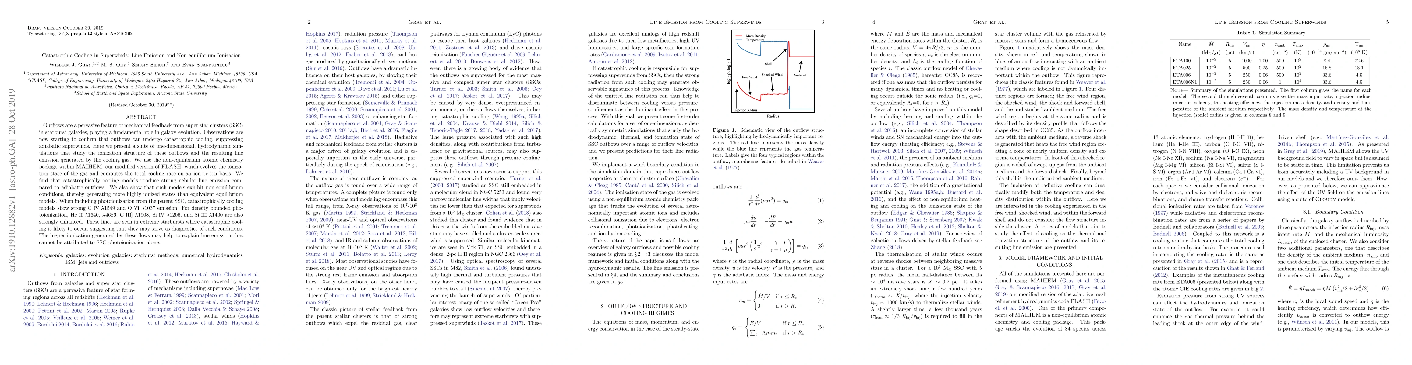 Outflows are a pervasive feature of mechanical feedback from super star clusters (SSC) in starburst galaxies, playing a fundamental role in galaxy evolution. Observations are now starting to confirm that outflows can undergo catastrophic cooling, suppressing adiabatic superwinds. Here we present a suite of one-dimensional, hydrodynamic simulations that study the ionization structure of these outflows and the resulting line emission generated by the cooling gas. We use the non-equilibrium atomic chemistry package within MAIHEM, our modified version of FLASH, which evolves the ionization state of the gas and computes the total cooling rate on an ion-by-ion basis. We find that catastrophically cooling models produce strong nebular line emission compared to adiabatic outflows. We also show that such models exhibit non-equilibrium conditions, thereby generating more highly ionized states than equivalent equilibrium models. When including photoionization from the parent SSC, catastrophically cooling models show strong C IV {\lambda}1549 and O VI {\lambda}1037 emission. For density bounded photoionization, He II {\lambda}1640, {\lambda}4686, C III] {\lambda}1908, Si IV {\lambda}1206, and Si III {\lambda}1400 are also strongly enhanced. These lines are seen in extreme starbursts where catastrophic cooling is likely to occur, suggesting that they may serve as diagnostics of such conditions. The higher ionization generated by these flows may help to explain line emission that cannot be attributed to SSC photoionization alone.