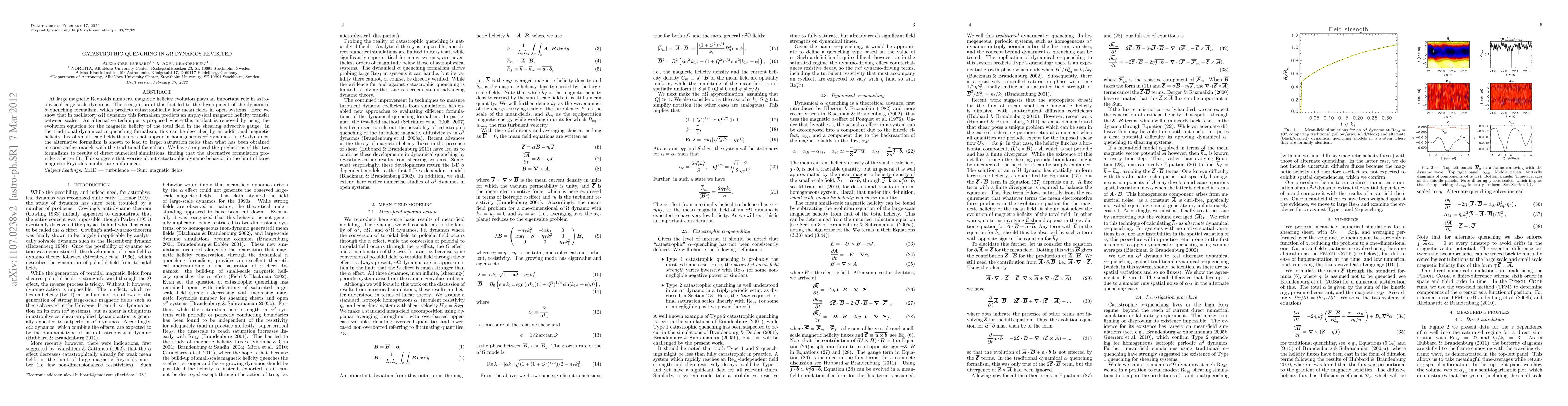 This paper critiques the traditional dynamical alpha quenching formalism for large-scale astrophysical dynamos, highlighting its prediction of unphysical magnetic helicity transfer. An alternative approach using the magnetic helicity evolution equation in the shearing-advective gauge is proposed, resulting in larger saturation fields in alpha-Omega dynamos compared to traditional methods.