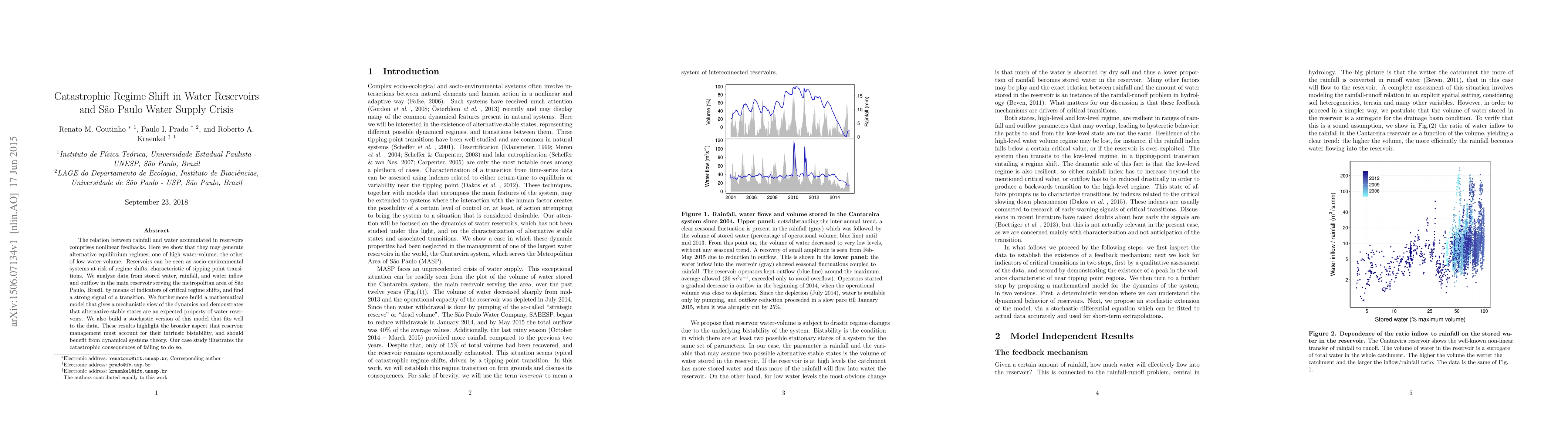 This paper investigates the nonlinear dynamics of water reservoirs, demonstrating that they can exhibit alternative stable states leading to catastrophic regime shifts. Using data from São Paulo's main reservoir, the study finds evidence of a critical transition and builds a mathematical model to illustrate the intrinsic bistability of reservoirs, emphasizing the importance of dynamical systems theory in reservoir management.