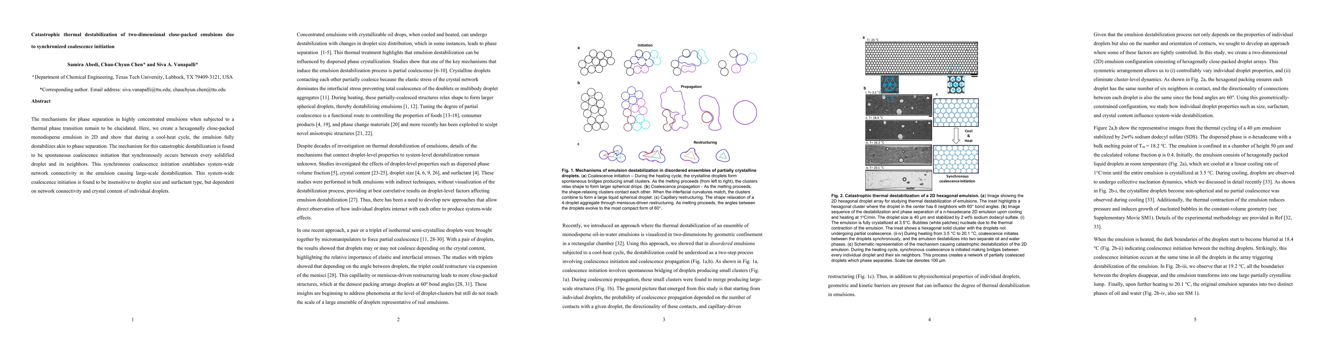 A 2D emulsion destabilizes catastrophically when cooled and then heated, with synchronous coalescence initiation between droplets causing large-scale phase separation regardless of droplet size or surfactant type.
