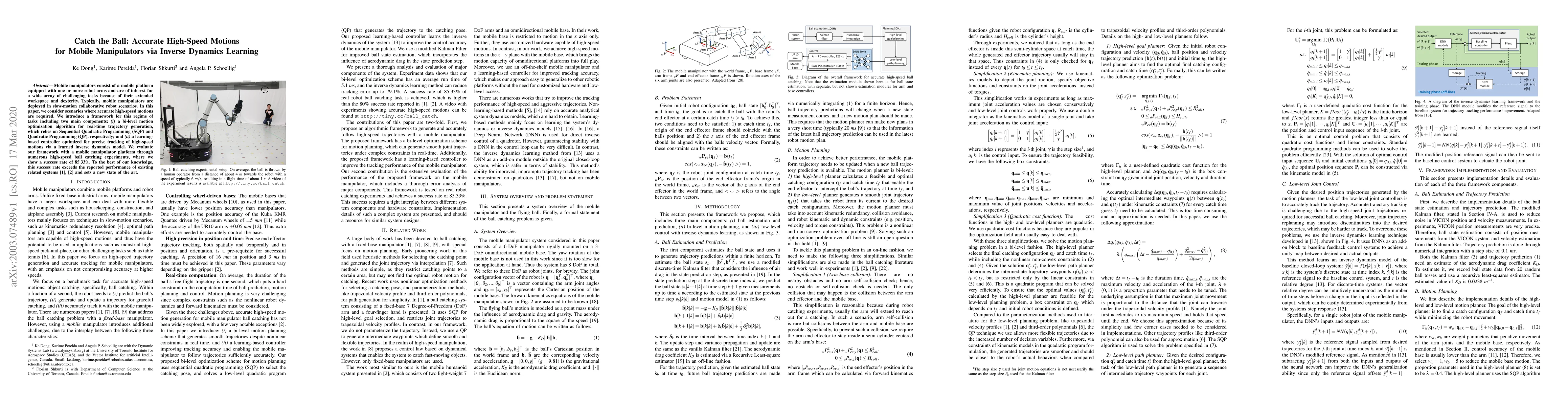 This paper presents a framework for enabling mobile manipulators to accurately perform high-speed motions, introducing a bi-level optimization algorithm and a learning-based inverse dynamics controller. Experiments demonstrate a high-speed ball catching success rate of 85.33%, outperforming existing systems.
