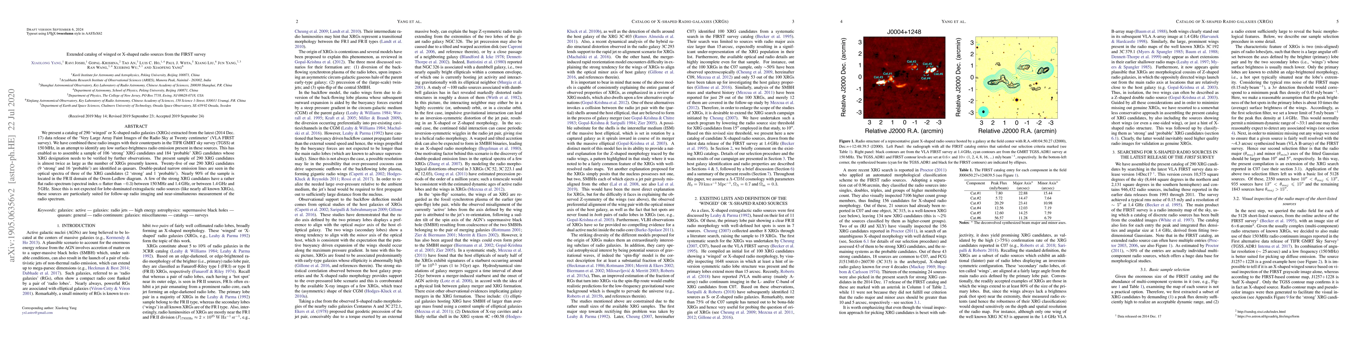 We present a catalog of 290 "winged" or X-shaped radio galaxies (XRGs) extracted from the latest (2014 December 17) data release of the "Very Large Array Faint Images of the Radio Sky at Twenty centimeter." We have combined these radio images with their counterparts in the TIFR GMRT sky survey at 150 MHz, in an attempt to identify any low surface brightness radio emission present in these sources. This has enabled us to assemble a sample of 106 "strong" XRG candidates and 184 "probable" XRG candidates whose XRG designation needs to be verified by further observations. The present sample of 290 XRG candidates is almost twice as large as the number of XRGs currently known. Twenty-five of our 290 XRG candidates (9 "strong" and 16 "probable") are identified as quasars. Double-peaked narrow emission lines are seen in the optical spectra of three of the XRG candidates (two "strong" and one "probable"). Nearly 90% of the sample is located in the FR II domain of the Owen-Ledlow diagram. A few of the strong XRG candidates have a rather flat radio spectrum (spectral index alpha flatter than -0.3) between 150 MHz and 1.4 GHz, or between 1.4 and 5 GHz. Since this is not expected for lobe-dominated extragalactic radio sources (like nearly all known XRGs), these sources are particularly suited for follow-up radio imaging and near-simultaneous measurement of the radio spectrum.