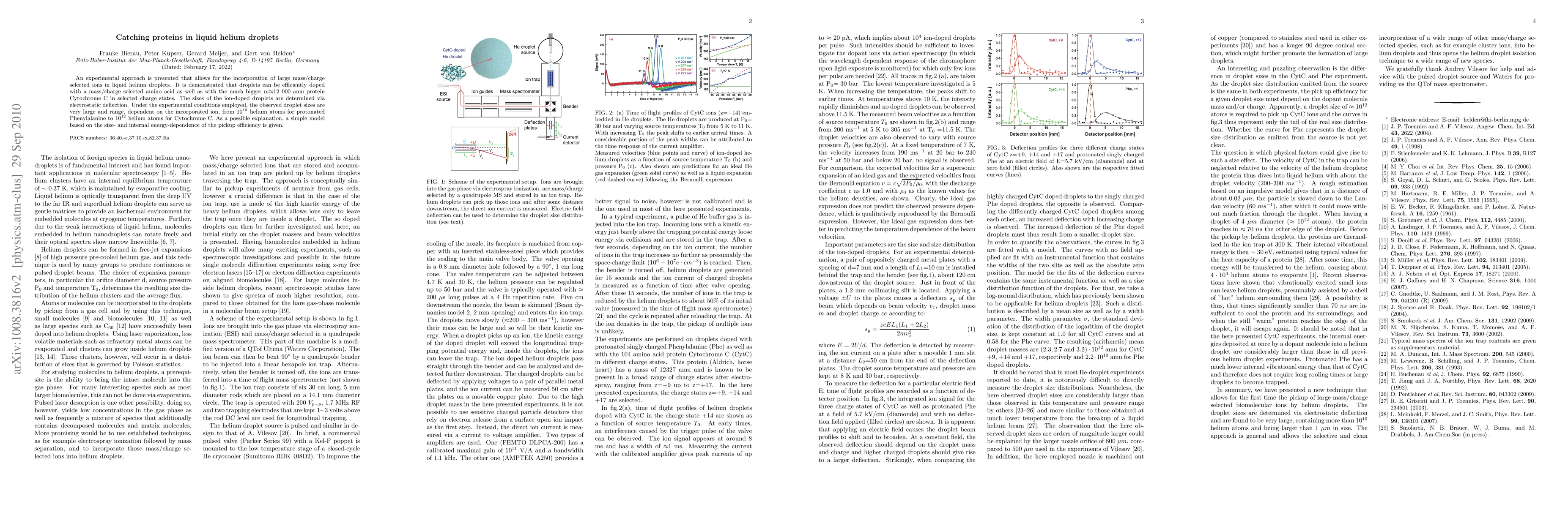 An experimental approach is presented that allows for the incorporation of large mass/charge selected ions in liquid helium droplets. It is demonstrated that droplets can be efficiently doped with a mass/charge selected amino acid as well as with the much bigger m$\approx$12 000 amu protein Cytochrome C in selected charge states. The sizes of the ion-doped droplets are determined via electrostatic deflection. Under the experimental conditions employed, the observed droplet sizes are very large and range, dependent on the incorporated ion, from 10$^{10}$ helium atoms for protonated Phenylalanine to 10$^{12}$ helium atoms for Cytochrome C. As a possible explanation, a simple model based on the size- and internal energy-dependence of the pickup efficiency is given.